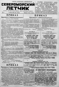 СМЕРТЬ НЕМЕЦКИМ ОККУПАНТАМ! СЕВЕРОМОРСКИЙ ЛЁТЧИК I А3 Е ТА ВО Е ИI I о ВОЗД У IIIН Ы X СИЛ С Е В Е Р НО Г О Ф ЛО Т А № 13 1 октября 1943 года, пятница. 3 0 с е н т я б р я 1 9 4 3 г. Москва, Кремль. П Р И К А З Верховного Главнокомандующего Генералу армии КОНЕЛУ В о й с к а С т е п н о г о ф р о н т а п о с л е т р е х д н е в н ы х у п о р н ы х б оев с л о м и л и с о п р о т и в л е н и е п р о т и в н и к а и с е г о д н я , 2 9 с е н т я б р я , о в л а д е л и г о р о д о м К Р Е М Е Н Ч У Г — с и л ь н ы м п р е д м о с т н ы м о п о р н ы м п у н к т о м н е м ц е в н а л е в о м берегѵ р е к и Д Н Е П Р . В б о я х за о с в о б о ж д е н и е г о р о д а К Р Е М Е Н Ч У Г о т л и ­ ч и л и с ь в о й с к а г е н е р а л - л е й т е н а н т а Ж А Д О В А , г е н е р а л - л е й т е н а н т а М А Н А Г А Р О В А и л е т ч и к и г е н е р а л - л е й т е н а н ­ та а в и а ц и и Г О Р Ю Н О В А . О с о б е н н о о т л и ч и л и с ь : 97 Г в а р д е й с к а я П о л т а в с к а я с т р е л к о в а я д и в и з и я г е ­ н е р а л -м а й о р а А Н Ц И Ф Е Р О В А , 6 Г в а р д е й с к а я в о з д у ш н о - д е с а н т н а я д и в и з и я п о л к о в н и к а С М И Р Н О В А , 2 1 4 с т р е л ­ к о в а я д и в и з и я п о л к о в н и к а Б Р О В Ч Е Н К О , 2 3 3 с т р е л к о в а я д и в и з и я п о л к о в н и к а С О К О Л О В А , 2 1 9 т а н к о в а я б р и г а д а п о д п о л к о в н и к а Х И Л О Б О К , 4 6У м и н о м е т н ы й п о л к м а й о р а Ч Е Р Н Я В С К О Г О , 3 0 8 Г в а р д е й с к и й м и н о м е т н ы й п о л к п о д п о л к о в н и к а Г О Л Ь Д И Н А , 1 9 0 2 с а м о х о д н ы й а р т и л л е ­ р и й с к и й п о л к п о д п о л к о в н и к а Г Р Д З Е Л И Ш В И Л И . В о з н а м е н о в а н и е о д е р ж а н н о й п о б е д ы с о е д и н е н и я м и ч а с т я м , о т л и ч и в ш и м с я в б о я х за о с в о б о ж д е н и е г о р о д а К Р Е М Е Н Ч У Г , п р и с в о и т ь н а и м е н о в а н и е „ К Р Е М Е Н Ч У Г ­ С К И Х " . В п р е д ь э т и с о е д и н е н и я и ч а с т и и м е н о в а т ь : 6 -я Г в а р д е й с к а я К р е м е н ч у г с к а я в о з д у ш н о - д е с а н т н а я д и в и з и я , 2 1 4 -я К р е м е н ч у г с к а я с т р е л к о в а я д и в и з и я , 2 3 3 -я К р е м е н ч у г с к а я с т р е л к о в а я д и в и з и я , 2 1 9 -я К р е м е н ч у г с к а я т а н к о в а я б р и г а д а , 4 6 9 -й К р е м е н ч у г с к и й м и н о м е т н ы й п о л к , 3 0 8 -й Г в а р д е й с к и й К р е м е н ч у г с к и й м и н о м е т н ы й п о л к , 1 9 0 2 -й К р е м е н ч у г с к и й с а м о х о д н ы й а р т и л л е р и й с к и й п о л к . 9 7 - ю Г в а р д е й с к у ю П о л т а в с к у ю с т р е л к о в у ю д и в и з и ю , в т о р о й р а з о т л и ч и в ш у ю с я в б о я х с н е м е ц к и м и з а х в а т ­ ч и к а м и , п р е д с т а в и т ь к н а г р а ж д е н и ю о р д е н о м К Р А С Н О Г О З Н А М Е Н И . С е г о д н я , 2 9 с е н т я б р я , в 2 3 ч а с а с т о л и ц а н а ш е й Р о ­ д и н ы М О С К В А о т и м е н и Р о д и н ы с а л ю т у е т н а ш и м д о ­ б л е с т н ы м в о й с к а м , о с в о б о д и в ш и м г о р о д К Р Е М Е Н Ч У Г , — д в е н а д ц а т ь ю а р т и л л е р и й с к и м и з а л п а м и и з с т а д в а д ц а т и ч е т ы р е х о р у д и й . З а о т л и ч н ы е б о е в ы е д е й с т в и я О Б ' Я В Л Я Ю Б Л А Г О ­ Д А Р Н О С Т Ь в с е м р у к о в о д и м ы м В а м и в о й с к а м , у ч а с т в о ­ в а в ш и м в б о я х з а о с в о б о ж д е н и е г о р о д а К Р Е М Е Н Ч У Г . В е ч н а я с л а в а г е р о я м , п а в ш и м в б о р ь б е з а с в о б о д у и н е з а в и с и м о с т ь н а ш е й Р о д и н ы ! С м е р т ь н е м е ц к и м з а х в а т ч и к а м ! Верховный Главнокомандующий Маршал Советского Союза И. СТАЛИН. 29 с е н т я б р я 1 9 4 3 г . П Р И К А З Верховного Главнокомандующего 2 9 с е н т я б р я 1 9 4 3 г о д а в р е з у л ь т а т е у п о р н ы х б о е в в о й с к а К а л и н и н с к о г о ф р о н т а о с в о б о д и л и о т н е м е ц к и х з а ­ х в а т ч и к о в 