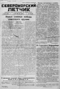 СМЕРТЬ НЕМЕЦКИМ ОККУПАНТАМ! С Е В Е Р О М О Р С К И Й ЛЕТЧИК ЕЖЕДНЕВНАЯ ГАЗЕТА ВОЕННО-ВОЗДУШНЫХ СИЛ СЕВЕРНОГО ФЛОТА, Потери противника и трофеи войск 1-го и 2™го Белорусских фронтов за время наступательных боев с 23 по 29 июня сего года Иш 155 (225) 1 июля 1944 года, суббота № 155 (225J Новые славные победы советского оружия И з приказов Верховного Главно командующего наша сыграна и весь мир узнали о двух н о й ь і х крупней ших победах с о в е т с к о й оружия. На севере .войсками Карельского фронта, в результате глубокого ма невра -на окружение і высадкой десанта на западном побережье Онежского озера, освобождена от немецко-финских захватчиков сто лица Карело-Финской республи ки—город Петрозаводск. На западе войска 1-го Белорус ского фронта, сломив сопротивле ние окруженной бобруйской груп пы немецких войск, штурмом ов ладели городом' и крупной желез подорожной стаициеи Бобруйск — важным узлом коммуникаций и мощным опорным пунктом обороны немцев, прикрывающим направле ния на Минск и Барановичи. Три года назад в такие же июньские дни города, о которых возвещают победные приказы товарища Сталина, приняли на се бя первые удары разбойничьего германского империализма. Мы вынуждены были оставить и ста ринный Бобруйск, имя которого вошло в военную историю русско го народа, и Петрозаводск — поли тический и культурный центр мо лодой Карепо-Финской р ''п у б л и ки. То были тяжелые дл я нас дни, когда наша армия еще не была о т мобилизована, когда еще не был приведен полностью в действие мо гучий военный арсенал нашей с о циалистической индустрии, когда враг использовал преимущества вероломного и внезапного нападе ния на наши границы. Но и в те дни советский народ был полон веры в торжество своего правого дела, в приход своей яобеды. И она приходит, блистательная победа, завоеванная нашей герои ческой Красной Армией, -нашим ве ликим народом под водительством великого Сталина. Поля советской Белоруссии и леса советской К а релии стали свидетелями июньских дней 1944 года — дней освобожде ния. Немцы и финны начинали о т сюда свой марш в глубь нашей страны, нагло об'явлекной ими своим «жизненным пространством». Ныне зд есь находят -свой бесслав ный конец бредовые идеи немецко- фашистских мерзавцев. История свершает свой справедливый суд. Врагу не удается и не удастся ускользнуть от возмездия. Сегодня публикуется сообщение Совин- формбюро о псгерях противника и трофеях войм двух наших фрон тов за время наступательных боев с 23 по -27 йоня . В районе Витеб- /ІереОовая „ l i p а в 0 « * * з а -SO ию н я 1944: г. ска немцы потеряли пленными и убитыми 77 тысяч солдат и офице ров, 495 танков и самоходных орудий, 2.0/4 орудия разных к а либров, 1.130 ѵ пометов, 6.728 пу леметов, 7.590 ;-зтомаціин. Немецко-фині кие захватчики оплатят полном ыо тот счет, кото рый будет пред явлен им каждым разоренным городом, каждой сож женной деревней. Сегодня они рас плачиваются по тем счетам, кото рые пред'являег им народ совет ской Белоруссии и народ Карело- ФйЦсой республики. Они ответят за в с ^ ^ е я н н о е ими на террито рии двух^Цавв^чіх республик, за муки, причиненные им.: мирному населению, за Фашистский за фашистское мрварство, Петрозаводск, только что осво божденный частями Красной Ар мии, является одновременно и сви детелем и обвинителем немец.ко- финской агрессии. Из публикуе мых сегодня в -Правде» материа лов ви