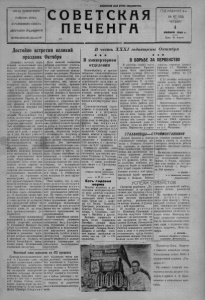 ПРОЛЕТАРИИ ВСЕХ СТРАН. СОЕДИНЯЙТЕСЬ. ОРГАН ПЕЧЕНГСКОГО РАЙКОМА ВКП(б) И РАЙОННОГО СОВЕТА ДЕПУТАТОВ ТРУДЯЩИХСЯ МУРМАНСКОЙ ОБЛАСТИ СО В Е Т С К А Я ПЕЧЕНГД ГОД ИЗДАНИЯ 2-й № 6 7 (182) ЧЕТВЕРГ 4 НОЯБРЯ 1948 г. Цена 20 копеек Достойно встретим великий праздник Октября Движение, начатое пере довыми коллективами мос- коиских предприятий, под няло огромные производст венные резервы. Коллективы предприятий нашего района вскрыли возможности ново го повышения производи тельности труда, сокраще ния расходов материала, сырья и энергии, снижения себестоимости продукции и повышения прибыльности предприятий. Борьба за ис пользование всех внутрен них резервов и возможно стей охватила широкие мас сы трудящихся-. Готовясь к достойной встрече Ч1 годовщины Ок тября, коллективы рудника и металлургического завода досрочно выполнили месяч ный производственный план в октябре: первый раньше срока на б дней, а второй — на 4 дня. На всех участках рудника и металлургическо го завода заметно поднялась производительность труда. Производительно тратится ■каждая минута рабочего- времени, экономно расходу ются материалы и энергия, лучше используется мощ ность оборудования. А в результате всего этого уже первый месяц борьбы за новые повышенные обяза тельства дал большие.суммы Iсверхплановых накоплений. Вслед за горняками и металлургами о выполне ним предоктябрьских обяза тельств сообщили из подсоб ного хозяйства, автотранс портного цеха и перевалоч ной базы порта Лиинахама- ри. В последнее время еже дневно поступают все новые и новые данные от коллекти вов предприятий района об успешном завершении ме сячного плана, об их боль ших производственных до стижениях. Большинство коллективов предприятий и учреждений района встречает славную 31 годовщину Великого Ок тября трудовики победами. Творческая инициатива масс привела в. движение внут ренние резервы производства и заставила их служить на пользу быстрейшего завер шения плана послевоенной сталинской пятилетки. Если каждый коллектив добился известных успехов, то это вовсе не означает, что уже полностью исполь зованы все резервы. Предела в наших возможностях нет. Наши резервы огромны я неиссякаемы, они таятся в советских людях, иризван- ных двигать вперед науку, технику и культуру произ водства. Вскрыть и привести в движение эти резервы — это дело прежде всего ста хановцев и ударников про изводства, работников инже нерно-технического труда и широких масс трудящихся предприятий 11 учреждений. Еще в середине октября металлурги, добившись зна чительного увеличения объ ема среднесуточного пропла ва руды и улучшения ряда других экономических пока зателей, выдвинули вопрос о возможности получить в цехе не 522 тысячи, а 700 тысяч рублей сверхплановой прибыли. Это требование было вполне обосновано опы том стахановской работы пе редовых смен и брягад за вода. Однако партийные ор ганизации и хозяйственные руководители не оценили должным образом это пред ложение, не поддержали инициативы металлургов и не дали ей развернуться во всю ширь. А инициатива эта исходила из м есс трудя щихся. Надо сказать, что в воп росах р а ц и о н а л и з а ц и и и изобретательства м н о г о еще консерватизма у отдель ных руководящих работни ков. На строительстве край не слабо внедряется механи-, зация трудоемких работ. А от инженерно - техничес