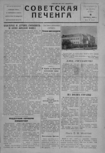ПРОЛЕТАРИИ ВСЕХ СТРАН. СОЕДИНЯЙТЕСЬI ОРГАН ПЕЧЕНГСКОГО РАЙКОМА ВКП(б) И РАЙОННОГО СОВЕТА ДЕПУТАТОВ ТРУДЯЩИХСЯ МУРМАНСКОЙ ОБЛАСТИ СО В Е Т С К А Я ПЕ Ч ЕН Г Я ГОД ИЗДАНИЯ 2 й № 55_(170) ЧЕТВЕРГ 18 С ЕНТЯ Б РЯ 1 9 4 0 г . Цена 20 копеек БЫСТРЕЕ И ЛУЧШЕ ГОТОВИТЬ К ЗИМЕ ЖИЛОЙ ФОНД Время осеннее. Теперь в любой день может насту пить похолодание. Но за го рами и зима. Пройдет еще немного времени —застучит мороз, завоет выога. И го ре будет тому хозяйствен нику, кто плохо подготовит ся и окажется застигнутым врасплох этим суровым контролем природы. Можно ли сказать, что все руководители предприя тий и учреждении района готовы к встрече заполяр ном зимы'» Нет. Плохо и медленно готовятся неко торые из них к контролю ящи е г о мороза. Пока что •„.*ло. И слишком много ■надежд у отдельных това рищей на то, что авось да запоздает в этом году зи ма. Как иначе можно расце нивать такой факт, когда из 127 домов поселка З а речье, требующих иосле- осадочного ремонта, при ведено в порядок только 5 домов. Водопровод, кото puii должен снабжать по селок водой, еще не сдай в эксплоатацию, гидранты не установлены. Такое же по ложение с водоснабжением и на 4-й линии Южного поселка. Сараи и уборные з 1 .ег'Ь еще не построены, а -yCU не дает возможности c'qjrrn времянки. Руководи тели управления капиталь- него строительства тт. Алек сеенко и Попов должны серьезно подумать, как в короткий срок выполнить намеченные работы и под готовить к зиме жилой фонд комбината. Большая работа предсто ит жилищно-коммунально му отделу комбината по ре монту старых домов. Капи тального ремонта требуют почти все финские дома, в которых протекают крыши, необходимо утепление стен, полов и потолков, требует ся перекладка печен и т. д. Бремя не терпит. Надо ши роким фронтом вести все подготовительные работы и закончить их до наступле ния заморозков. Объем работ по подго товке жилого фонда к зи ме велик, а рабочей силы недостаточно, чтобы в ко роткий срок разрешить все вопросы бытового устрой ства. И теперь в этом деле не обойтись без помощи са мого населения. Хороший пример в этом отношении показывают жители посел ка Степана Халтурин?, сво ими силами ведущие под готовку к зиме домов и квартир. Их инициативу следует поддержать. Ряд работ, как например, засып ку цоколей, полов и потол ков, конопатку и побелку стен вполне могут провести жильцы своими силами. И было бы Несправедливо си деть перед наступлением морозов в неподготовленной квартире в ожидании по мощи от государства. Задача партийных, проф союзных и комсомольских организаций заключается в том, чтобы рассказать на селению о проявленной ини циативе жителями поселка Степана Халтурина и орга низовать всех жильцов на работу по подготовке своих домов и квартир к зиме. Чтобы инициатива населе ния могла проявиться в полной мере, нужно поза ботиться о предоставлении для ремонта необходимых материалов, инструмента и транспорта Все это можно и нужно сделать, если про явить хозяйственную рас торопность. До наступления морозов сроки остаются сжатые. Но сил и средств, когда отклик нутся сами ж и лыш , у нас достаточно. Имеются все возможности для т о г о , Чтобы образцово подгото вить к зиме свои жилища. Следует лишь использовать эти возможности. Передовика соревнования комбината Успехи металлургов Включившись в социали стическое,, соревнование за досрочное выполнение пла
