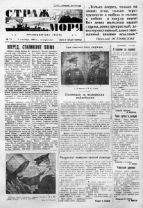 Смерть немецким - бжкуианта&’ О Р Я ★ ★ К Р А С Н О Ф Л О Т С К А Я Г А З Е Т А * ★ № 7 3 | 3 сентября 1944 г., воскресенье : ПРОЧТИ И ПЕРЕДАЙ ТОВАРИЩУ. „Только вперед, только на линию огня, только чере:$ трудности к победе и только к победе и никуда иначе! Вот девиз молодежи нашей страны, девиз прекрасный, де виз мужественный,девиз заве щанный нашими вождями" Николай ОСТРОВСКИЙ ВПЕРЕД, СТАЛИНСКОЕ ПЛЕМЯ Герои Советского Союза североморцы Победные знамена Красной Ар мии уже реют в Бухаресте, на подступах н Варшаве, на границе Восточной Пруссии. Наши войсча неутомимо наступают, одерживая победу за победой, приближая день окончательного разгрома не навистного гитлеризма. И е пер вых рядах бойцов Отечественной войны Советского Союза сра жается наша молодежь. Советская молодежь знает, что ее смертельный враг — фашизм. Гитлеровские людоеды хотели сделать наших юношей и деву шек своими рабами. Фашисты нарушили нашу мирную жизнь, прервали учебу и любимый труд миллионов юношей и девушек. Как единая дружная семья, еще теснее сплотились юные со ветские патриоты вокруг партии Ленина— Сталина и выступили с оружием в руках на защиту своей Родины, счастья своей мо лодости. В борьбе советского народа против немецко-фашистских за хватчиков яркими рубинами за сверкали лучшие благороднейшие качества нашей молодежи. Совет ская молодежь и в первых рядах ее Ленинско-Сталинсний комсо мол под руководством большз- вистской партии беспощадно истребляет гитлеровскую мразь. Преданность Родине, самоот верженность и героизм — вот к а чества советской молодежи. Эти качества заналились в боях, эти качества воспитали в ней комсо мол, большевистская партия, ве ликий Сталин — первый друг, учитель и вождь советской моло дежи. Имя Сталина ■— в сердце каждого юного патриота. Страна гордится своей моло дежью. Вечной славой и народной любовью окружены имена юных партизан Героев Советского Сою за Лизы Чайкиной, Зоі* Космо демьянской, Михаила Сильницко- го и многих других. Никогда не забудутся имена организаторов и руководителей «Молодой гвар дии» Героев Советского Союза Олега Кошевого, Ульяны Громо вой, Ивана Земнухова, Сергея Тюленина, Любови Шевцовой. Немало ярких страниц в исто рию Отечественной войны вписа ли молодые моряки Севера. Одним из первых Героев Советского Сою за был североморец комсомолец Иван Сивко. Комсомольцы и молодые моря ки нашего соединения также по казывают примеры беззаветного мужества и отваги в жестокой борьбе против гитлеровских за хватчиков. Молодой краснофлотец пуле метчик Николай Лысых в бою с немецкими самолетами был тяже ло ірансн. Ему предлагали оста вить боевой пост, но он отказал ся. Напрягая последние сипы, Николай продолжал вести огонь по стервятнику до тех пор, пока вражеский оснолон не оборвал его молодую жизнь. Таких примеров — много. На вечно занесены в списон экипа жа 2-го Гвардейсного Краснозна менного дивизиона морских охот- нинов имена комсомольцев-моря- ков Молоткова, Бойченко и дру гих, павших геройской смертью в огне сражения. Они отдали свою жизнь за Родину. Родина •— это самое дорогое для советского человека. Где бы ты ни был, юный патриот, пом ни — Родина, советский народ, большевистская партия, товарищ Сталин ждет от тебя славных подвигов во имя победы. Вперед, сталинское племя! Вперед, североморцы, за близкую окончатель