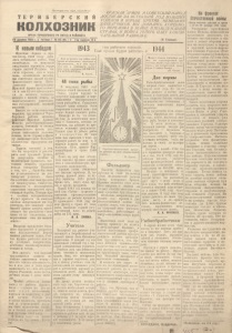 Пролетарии всех стран, соединяйтесь! Т Е Р И Б Е Р С К И Й КОЛХОЗНИК ___________ ОРГАН ТЕРИБЕРСКОГО РК ВКП(б) И РАЙСОВЕТА 3 0 декабря 1943 г. \ Четверг 8 № 6'< '8 4 t ) | Год издания 12 й кРАСНАЯ АРМИЯ И СОВЕТСКИЙ НАРОД ЛОСТИГАИ ЗА ИСТЕКШИЙ ГОА БОАЫЛИХ УСПЕХОВ В БОРЬБЕ ПРОТИВ НЕМЕЦКИХ ЗАХВАТЧИКОВ. МЫ АОБИАИСЬ КОРЕННО ГО ПЕРЕАОМА В ВОЙНЕ В ПОАЬЗУ НАШЕЙ СТРАНЫ, И ВОЙНА ТЕПЕРЬ ИЛЕТ к ОКОН- ЧАТЕАЬНОЙ РАЗВЯЗКЕ. (И. Сталин). К новымпобедам Красная Армия в про шедшем, 1943 году доби лась небывалых побед. Она освободила от немецкой оккупации огромную тррри торию нашей Родины, ты сячи городов, сел и дере вень, освободила миллио ны советских людей из-под фашистского гнета. Побе доносное наступление Красной Армии продолжает ся и оно будет продолжать ся до полного изгнания немцев с нашей земли, до окончательного уничтоже ния гитлеровской военной машины. Вместе со всем советским народом, трудящиеся Тери- берского района активно помогают Красной Армии. Многие рыбообратывающие пункты, команды и звенья промыслового флота дос рочно выполнили годовые планы, дали стране н фрон ту дополнительно большое количество продуктов пи тания. Задача состоит в том, что бы закрепить и расши рить этот трудовой успех, не допускать ошибок и недостатков прошлого, пос тоянно помнить указания вождя товарища Сталина о том, что „...было бы наив но успокаиваться на дос тигнутых успехах... было бы особенно опасным предать ся благодушию, самоуспо коенности и недооценить серьезных трудностей пред стоящей борьбы. Теперь враг с особым остервенением будет драться клочок захваченной им ритории, ибо каждый iuai нашей армии вперед приб лижает час расплаты с нем цами за их злодеяния, со вершенные ими на нашей земле». 1943 год работали хорошо. Еще лучше будем работать 1944 Ьсли на третьем году воины наг армия не испытывает недостатка в продовольствии,., то в этом сказа лись сила и жизненность колхоз ного строя, патриотизм КОЛХОЗНО ГО КРЕСТЬЯН СТВА . И. Сталин. 48 тонн рыбы В минувшем 1943 год) команда пашой колхозной ёлы «Чайка» упорно боролась за досрочное выполнение и пере выполнение государственного плана рыбодобычи. Стремление каждого члена команды было направлено к единой цели—как можно больше выловить рыбы. Несмотря на то, что коман да ёлы, за исключением капи тана т. Синицпна, состояла из новичков, мы добились на про мысле отличных результатов. Годовой план по. добыче рыбы в к о л и ч е с т в е 25 тонн нами был выполнен в июле. За хорошую работу на лову в II квартале команда нашей ёлы получила 111-ю премию Нар- комрыбпрома в сумме 1500 рублей. Успех на лову нам обеспе чили высокая трудовая дисцип лина и использование всех про мысловых возможностей. Хорошие уловы обеспечили нам высокие заработки. Я, на пример, рядовой ловец за пу тину заработал 3285 рублей. Кроме того, много муки, кру пы и других продуктов. Новый 1944 год команда на шей ёлы «Чайка» встречает с „ высокими производственными заГкаждый j п°бедами на рыбном промысле. “ v • В прошедшем—1943 году мы дали фронту и стране 48 тонн рыбы, выполнив годовой госу дарственный план по добыче рыбы на 192 проц. В. А. ЗИМИН. Советская интеллигенция предай- но раоотает на дело обороны нашей страны.,, И, Сталин.. Фельдшер Тысячи пациентов тер I Впереди предстоят боль шие трудности в разреше нии поставленных перед нашим районом задач. Сей час нужно работать каждо му особенно напряженно осо