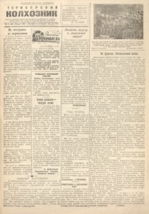 ПРОЛЕТАРИИ ВСЕХ СТРАН, СОЕДИНЯЙТЕСЬ! Т Е Р И Б Е Р С К И Й КОЛХОЗНИК О Р Г А Н Т Е Р И Б Е Р С К О Г О Р К В К П (б ) И РАЙО ННО ГО С О В Е Т А Д ЕПУТА ТО В Т Р У Д Я Щ И Х С Я М У РМ А Н С КО Й ОБЛАСТИ № 11 *852) 16 март* 1944 г. (Выходит по четверым ) Год изд 12 й !|---------—■Г7ТГ-^ = «..Только неуклонно нарастающие в своей си ле сокрушительные уда­ ры могут сломить со­ противление врага и -привести нас к оконча­ тельной победе». II. СТАЛИН. Не отступать от нормативов В путину прошлого года про мыеловый флот нашего района не додал государству десятки и даже сотни тонн рыбы в следст вне недовыполнения нормативов во орудиям лова. Даже передо* воП бот «Кировец» п то не до- обработал по установленным нормам более 20 процентов ору диЯ лова. Районное партийное собрание от 29-31 января с.г. отметило па недопустимость по­ добного положения в путину 1944 года и потребовало от ру ководптелей МРС п колхозов ре шптельноВ борьбы за выполне­ ние нормативов с первых дней промысла. Однако, ошибки прошлого на­ чинают повторятся и в этом го ду. Так, рыбаки «Сардинки» 10 марта обработали 15 сетей. На один порядок команда добыла 159 кг. рыбы. А ведь улов мог бы быть в 3-4 раза больше, если бы рыбаки обработали 4 поряд­ ка т.е., не менее установленной нормы орудий лова за рейс. 1лп такой факт. Бот „Пплот“ производит поисковую работу. Йзалось бы, чем больше коман да обработает порядков, постав ленных в различных местах, тем скорее будет обнаружена концентрация рыбы. Однако ры баки «Пилота» продолжают об ргбатывать не более 2 норяд ков за рейс. Териберокая МРС и правления колхозов попусти твльствуют «тому. II еще один не мепее важный вопрос. Уже сейчас вся иесамо ходпая промысловая посуда во всех колхозах должна быть в полной готовности к лову. Но в большинстве колхо:юв не толь ко парусные, а и моторные ёлы еще не готовы к лову. В колхо зах наблюдается недопустимая, выжидательная тенденция, яко бы, на ёлах ловить можно не ра вее мая месяца. Ловить можно и надо уже сейчас. Правильно поступили колхоз­ ники «Северного Сияния» тт. Редькин, Морозов и Андронов, приведшие в полпую готовность свои парусные ёлы. В ближай шве дпи они приступят к промысловой работе. Так могут и обязаны посту­ пать все кормщики несамоходно го флота, буквально в блнжай шпе дни подготовить закреплен ную за ними посуду к лову. 1,?>Н ТОННЫ ------- — ■ П О Л З А Н И И 13 м|рт» колхозники .Свобод ного Мурмаиа* обнаружили подо шедший к берегу косяк рыбы полусвйки Правление колхоза быстро организовало людей на лов рыбы За несколько часов кошмами ии неводом выловили 1300 ки лограммов полусайки. На следующий день колхоани ки продолжали лов рыбы и до были еще 283 кг. полусайки. ПРОМЫСЕЛ ЗВЕРИНЫМИ РЯДАМИ Колхоз Стахановец . Звено карбаса № 1 под руководством кормщика т. Немчинова в зве­ риные ряды за один день добы ло 145 килограммов акулы и около 100 килограммов морско­ го зверя. Колхоз ставит дополнитель­ ные звериные сети. Слово рыбаков— твердое слово Газета /ГериберекиИ Кол хозннк» уже писали о том, что старые пахари Баронцо на моря колхозники Савва т и й Иванович Родькин,Потр Демьянович Морозов и Сто пап Артемьевич Андронов решили в этой ГОДУ JOBfffb рыбу в море на парусных слах и о том, что они дея­ тельно готовятся к путине. Олова старых рыболовов не расходятся с делом. Се­ годня они могут смело ска­ зать: Мы к лову готовы. А работа проделана нема лая. Полностью оснаще
