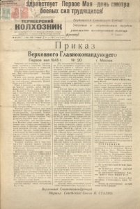 Териберский колхозник. 1945, 1 мая (№ 18).
