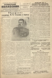ПРОЛЕТАРИИ ВСЕХ СТРАН, СОЕДИНЯЙТЕСЬ; ТЕРИБЕРСКИЙ КОЛХОЗНИК ОРГАН ТЕРЙБЕРСКОГО РК ВКП(б) И РАЙОННОГО СОВЕТА ДЕПУТАТОВ ТРУДЯЩИХСЯ МУРМАНСКОЙ ОБЛАСТИ №» 20 (930) ! 17 Мая 1945 г. Четверг | Год изд. 14-й |цена 15 коп. З Н А М Я П О Б Е Д Ы Р Е Е Т Н А Д Н А М И О б р а товарища И. В. щ е н и е Сталина к народу Товарищи! Соотечест венники и соотечествен ницы! Наступил великий день победы над Германией. Фашистская I ермания, поставленная на колени Красной Армией и вой сками наших союзников, признала себя побежден ной и объявила безогово рочную капитуляцию. 7 мая был подписан в городе Реймсе предвари тельный протокол капи- туляции. 8 мая предста вители немецкого глав нокомандования в При- j сутствии представителей Верховного командова- f ния союзных войск и ; Верховного Главнокоман дования советских войск : подписали в Берлине окончательный акт капи туляции, исполнение ко торого началось с 24 ча сов 8 мая. Зная волчью повадку;* немецких заправил, считающих до говора и соглашения пустой бумаж кой, мы не имеем основания верить им на слово. Однако сегодня с утра немецкие войска во исполнение ак та капитуляции стали в массовом порядке складывать оружие и сда ваться в плен нашим войскам. Эго уже не пустая бумажка. Это- -дейст вительная капитуляция вооружен ных сил Германии. Правда, одна группа немецких войск в районе Чехословакии все еще уклоняется от капитуляции. Но я надеюсь, что Красной Армии удастся привести ее в чувство. Теперь мы можем с полным ос нованием заявить, что наступил не торический день окончательного раз грома Германии, день великой побе ды нашего народа над германским империализмом. Великие жертвы, принесенные на ми во имя свободы и независимос- ■ти нашей Родины, неисчислимые : лишения и страдания, пережитые нашим народом в ходе войны, на- I пряженный труд в тылу и на фрон- | те, отданный на алтарь Отечества, —не прошли даром и увенчались |: полной победой над врагом. Веко вая борьба славянских народов за | свое существование и свою незави- I симость окончилась победой над не I мецкими захватчиками и немецкой : тиранией. Отныне над Европой будет раз- Ч¥ш т 1 > Л " •J веваться великое, знамя свободы на роде!! и мира между народами. Три года назад Гитлер всенарод но заявил, что в его задачи входит расчленение Советского Союза и от рыв от него Кавказа, Украины, Ье лоруссии, Прибалтики и других об лас/гей. Он прямо заявил: „Мы унич тожим Россию, чтобы она больше никогда не смогла подняться". Это было три года назад. Но сумасброд ным идеям Гитлера не суждено бы ло сбиться,- ход войны развеял их в прах. На деле иолучилорь нечто прямо противополоашое тому, о чем бредили гитлеровцы. Германия раз бита наголову. Германские войска капитулируют. Советский Союз тор жествует победу, хотя он и не со бирается ни расчленять, ни унич тожать Германию. Товарищи! Великая Отечественная война завершилась нашей полной победой. Период войны в Европе кончился. Начался период мирного развития. С победой вас, мои дорогие со отечественники и соотечествен ницы! С л а е г кашей героической Красной Ар мии, отстоявшей нез8виси*ость нашей Родины и навоевавшей es>6®£у над вра г е » ! Слава нашему велмнему народу, на р о д у - победителю! Вечная слава герои», павшим в бгях с врагом и отдавшим свою жизнь sa свободу и счастье нашего народа’ ПОДПИСАНИЕ АКТА О БЕЗОГОВОРОЧНОЙ КАПИТУЛЯЦИИ ГЕРМАНСКИХ ВООРУЖЕННЫХ СИЛ 