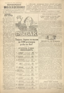 ПГОЛБТАРНЙ ВСЕХ СТРАН, СРЕДИИЯЙТЕСЬ! Т Е Р И Б Е Р О К И Й к о л х о з н и OITAI1 ТКРИБЁРСК-ОГО РК ВКГКб) И РАЙОННОГО СОВЕТА ДЕПУТАТОВ ТРУДЯЩИХСЯ МУРМАНСКОЙ области Н? 21 '931) I 24 Man 1945 г. Четверг | Год нзд 14-й! цепа 15 коп. Команда моторного бота „Свет4* под руко водством капитана Редькина Ф. и моториста Усова С. досрочно выполнила годовой план рыба - добычи , Рыбаки обязались до конца года дать сверх плана 5QG центнеров трески. Рыбаки!Берите пример с передовиков лова! КАЖДОМУ— СВОЙ ОГОРОД! В дни войны индивидуал ь нос огородничество в на шей области приобрело мае сошла характер. И это по нятно. Трудящиеся » нем нндяг про;;, «Jtii.ilый исто-; инк цонолнител! ных про дуктов питания. Каждому понятно, как трудно доставлять в нашу область, особенно в наш район, овощи, картофель и другие -сельхозпродукты А у нас ведь есть еще много неиспользованных местных ресурсов, лоторые могут дать бол.шое количество овощей и картофеля для ж 1)ного потребдепия . Колхозники пос. 'I ерибер ка Л. Фомин. М. Логинова, М, Воронин и многие дру гие ежегодно со своих ого- родов снимают приличный урожаи картофеля и ово щей. 'Mill люоовно ухажи вают за огородами, удобря ют почву, заботятся о семе иах, следят за посевами. И труд их окупается ото}И- Цой.. _ . , Разделать свой oi оро 1 имеет полную возможность к«ж Iни семья колхозника., рабочего, служащего как' в поселке Териберке. так и в стачовчщах района. Напри мер, в ст Г.шрилово около колхозном фермы нус сует порядочная площадь земли. Здесь м^жно раз слать мно го индивидуальных огоро дой. Но пи сельский совет, ни правление колхоза не зашимсь еще вплотную #тим вопросом, пс органи чн а -и колхозников на это дело. Цисту чает поря сева, ид паи» прсфсо зние оргапи за.цчн никакой работы по я томv вопросу еще не про вели’ На ю провести собра ния рабочих, на которых до бит! ен такого положения, Чтобы каждый рабочий и служ ащ ий из яI ИЛ желание а ичмап .ся индивидуаль ным огородничеством, I осслк^БОМу н сельским Гоистам надо поме тля от вести земельные уча с тки под ни ивн tya.ii Hhie о>'0ро Ды. ! » Ионному земельному от делу е л е - у с т обесие 'ить огорочинков семенами, ор ганизовать выращивание рас сады в паричках колхоза им, | ороишлова. 15 бли'.пйпшме дни следует провеет п оощие собрания рабочих п о.чу.мипих е вой росами, на:: ■'■! г ’ рее и луч- itю провести весенние ра боты на к.оллектнг-ных и на ДЦ!Ч!|.[уаЛ1 них on ро tux. То гарищ я! Г омните, что чем бол! ше мы посадим картсфелл и овощей , тем Лучше .о ei-псчнм себя про- д вольетвисм. Шире pa'i'Hbeu иИШВИду- цлы> 1 ''" "I’Oj о uui4ecn>o, Тверже борись за вылов по 1500 центнеров рыбы на бот! ★ ★ ★ утатЕеь у них ПОБЕЖДАТЬ / 2 П Т А Й М Ш " с начала |Ч'Да ! ДгШОН лобыл рыбы 790 (Капнтак Т*рьбарин, моторист Жолноэ). БОДРЫЙ11сд" Г “„Ха 763 центне ров П О Л О Ж Е Н И Е о порядка занесения на сблаевдю „доску Почета1' в газете „Полярная правда" язрздззкш доОыча рыбы 1. На областную ,,Доску Почета'* заносятся рыболо вецкио колхозы, моторные боты, моторные \ пцрчгцые ёлы и рыболовецкие бригады, которые в р(ОуД»тате произвол,отельного труда, крепкоснаянноЁ Трудоиой дис циплины среди колхолмиков, на основе социалистиче- ского соревнования с другими колхозами и командами промысловых судов вышли в число иередбиых н доби лись в борьбе за первенство досрочного выполнения годового плана добычи рыбы 2. При занесении на «.Доску Почета* колхоза ука зываются основные п казатели и перечисляются фа
