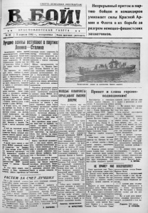 С М Е Р Т Ь Н ЕМ ЕЦ КИМ О К К УП АН Т АМ ! Ж„сѵ<г f||SL *^Sa ва^*® К Р А С Н О Ф Л О Т С К А Я Г А З Е Т А ★ ★ 5 апреля 1942 г., воскресенье , «■ і ѵ ѵ ' ^^^^^^^^шяят^аят^юя^юятяятт» После прочтения— уничтож ить Непрерывный приток в пар тию бойцов и командиров умножает силы Красной Ар мии и Флота в их борьбе за разгром немецко-фашистских захватчиков. Лучшие воины вступают в партию Ленина-Сталина О т е ч е с т в е н н а я война против н е м е ц к о -ф а ш и с т с к и х захватчиков вызвала небывалый боевой поли тический под’ем личного состава нашего соединения. В могучем патриотическом порыве еще тес- нее сплотились бойцы и коман диры вокруг партии Ленина— Сталина. Они поднялись на защиту ганмзации нашего соединения. За полгода отечественной войны парторганизация соединения вы росла больше, чем в три раза в сравнении с первым полугодием 1941 года. Однако, парторганизации, где секретарями тт. Пименов, Зама- рин, Петухов, Ванюгин не уде ляют постоянного внимания ун своей чести, свободы и иацио-; репяению организационных свя. нальнсй независимости. Красная зей с беспартийными массами, армия и Военно-Морской Флот в результате рост этих^ парторга- нанесли сокрушительный удар гитлеровским полчищам, и не да вая врагу іпередышии, продолжа ют громить и уничтожать немец ких оккупантов. Бойцы и командиры живут одними мыслями, одним стрем лением — разгромить ненавист ного врага. Лучшие из них, до казавшие с оружием в руках свою преданность партии Ленина —Сталина, кровную связь с ней, вступают в ряды ВНП(б). В Н-ской части, где секрета рем партбюро тов. Сизов, в пар тию принят с сокращенным кан дидатским стажем тов. Д-ыляев, который мужественно вел себя в сражении — быстро погасил возникший пожар, оказал по мощь раненому товарищу и по давал боезапас к орудию. Тов Дыляев с честью выполнил свой ДОЛГ. В этой же партийной органи зации принят в члены ВНП(б) пулеметчик (Несин, .который свое временно заметил самолет против мна, пикировавший на корабль, метким огнем отбил йтаку стер- вяткина. В другой части принят в кан дидаты ВКП(б) младиший коман* *4» пулеметчик тов. Зимовец “Н своим меткам огнем уничто- Жил прожектор противника, что пало возможность кораблю по- Доити на желаемую дистанцию и потопить транспорт против* ника. Тов. Димовец награжден иравительством ČCČP высокой наградой — орденом Красной «езды. За счет таких людей, отли вшихся в боях, проявивших УЖество, растут партийные ор- низаций отсутствует. Здесь же недостаточно хорошо организована работа по воспитанию молодых коммунистов. Партийная организация должна повседневно заботиться о полити ческом просвещении кандидатов и молодых членов ВНП(б), об их марксистско-ленинском воспита. НИИ. Выло бы неправильно и вредно полагаться на самотек в деле роста партийных рядов. Задача Катер-охотник уходит на выполнение боевого задания. МОЛОДЫЕ КОММУНИСТЫ ОПРАВДЫВАЮТ ВЫСОКОЕ ДОВЕРИЕ Привет и слава героям- подводникам! Тоілыко в текущем году мы партийных организаций кораблей ’приняли кандидатами в члены и частей состоит в том, чтобы ' ВІШ(б) пять человек. За. шесть У » К ™ flPWew. свежую га- j с гороев-нодводншшв, у. ни* учи Краснофлотцы и командиры! техникой, довести действия: свои Н-ского корабли собрались на у оружия и механизмов до а г а г митиніг. В тренолненном кубрике магизма. идет оживленный говор. Многие — Мы должны Йрать пример активной полит