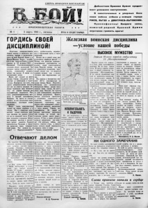 С М Е Р Т Ь Н ЕМ ЕЦ К ИМ О ККУПАН ТАМ ! х ~к к № 8 і К Р А С Н 0 Ф Я О Т С Н А Й Г А З Е Т А 5 марта 1943 г., пятница ПРОЧТИ и передай т о в а р ищ у . Добле стная Красная Армия продол* жа ет успешное наступление . В ожесточенных и упорных боях наши войска отбили у немцев города РЖЕВ , ЛЬГОВ и ДМИТРИЕВ -ЛЬГОВСКИИ. К р а с н о ф л о т е ц ! Напряги силы , п о м о г а й р о д н о й К р а с н о й А р м и и неустанно громить врага ! Г О РД И С Ь СВОЕЙ ДИСЦИПЛИНОЙ ! «Неустанно совершенствовать боевую выучку и укреплять дис циплину, порядок и организован ность во всей Красной Армии и в Воекно Морском Флоте», потребо вал от нас товарищ Сталин в своем приказе от 23 февраля 1943 г. Верховный Главноксмандующий приказал— будет выполнено! Так понимает приказ каждый красно флотец, стремящийся ускорить победу над врагом. А поняв это, подтверждает делсм. Много лет служит на флоте мичман Гажур, пользуется авто ритетом у командиров и подчи ненных. Безупречен его путь, ни едкого дисциплинарного взыска ния нет на совести мичмана. От лично ; выполняя свои обязанно сти, он служит образцом для краснофлотцев соединения. Под- стать дисциплинированному мич- мгиу и молодой краснофлотец Нояосков. На флоте он служит недавно, но іего дисциплине могут позавидовать неноторые старо служащие. Много таких краснофлотцев служит на наших кораблях и в частях. Они с гордостью несут высокое звание советских воен ных моряков, ни единого пятна нет ка их воинской чести. И все- таки находятся отдельные бойцы, для которых понятие о дисцип лине значит немногое. Недавно краснофлотцы Кузнецов и Завья лов предстали перед товарище ским судом. Что привело их к этому? — Недисциплинирован ность, разоолтанность, неуваже ние к собственной чести, к чести товарищей. Почему же в нашей среде еще встречаются подобные факты? — Потому, что зачастую недисцип линированные краснофлотцы не сознают своей ответственности перед Родиной, потому что они не сиружаются вниманием това рищей, вокруг них не создается сурового мнения, как о людях, тянущих свое подразделение на зад. йы помним о бессмертном под виге 25-ти краснофлотцев из отряда минера Ивана Никулина. Вспомним, мак встревожились безоружные бойцы, увидев окру жавших поезд немцев. Не расте рялся лишь Никулин. Он принял на себя командование, потребовал ст бойцов дисциплины. Красно флотцы выполнили приказание и, дисциплина, помноженная на мужество, победила — моряки совершили героические дела, покрыв себя неувядаемой славой. Высокая воинская дисциплина — честь моряка. Гордись ею, краснофлотец. Не марай ни единым проступком врученных тебе логонов, не пятнай про ступками успехи своего подраз деления. В бсію и труде соблюдай высокую дисциплину, сна помо жет тебе добиться победы над врагом, помсміет стать в первые ряды лучших людей соединения, завоевать почет и славу. Гордись дисциплиной, моряк! Железная воинская дисциплина "-условие нашей победы г * •?,?-■ - - 1 шш t г л у . ' Г Пятнадцать лет служит на флоте чичман П. Ф. Гажур. Он п о к а з ы вает пример высо к ой дисциплины и отлично знает с в о е дело. З а р и с о в к а краснофлотца Неелова. Отвечают делом На кораблях ‘Краснознаменного дивизиона краснофлотцы и коман т р ы активно изучают приказ товарища Сталина. Агитаторы Муравьев, Вороной, Рогов, Демь янов, Ломтев проводят среди бой цов читки приказа, раз’ясняют ого, мобилизуют краснофлотцев па 