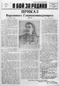 о Смерть немецким оккупантам) Nš 60 Понедельник I мая 1944 г. □ В І О Й 3 1 N 1 1 1 8 Краснофлотская газета ВЫХОДИТ ЧЕРЕЗ ДЕНЬ Прочти и п ер ед ай товарищу -D □= П Р И К А З Верховного Главнокомандующего №7 0 гор. Мо с к в а 1 мая 1944 года Товарищи красноармейцы и краснофлот цы, сержанты, офицеры и генералы, партиза ны и партизанки! Трудящиеся Советского Сою за! Братья и сестры, временно подпавшие под иго немецких угнетателей и насильственно угнанные на фашистскую каторгу в Германию! От имени Советского Правительства и нашей большевистской партии приветствую и поздравляю вас с днем 1 Мая! Народы нашей страны встречают день I Мая в обстановке выдающихся успехов Красной Армии. Со времени разгрома немецких дивизий «од Сталинградом Красная Армия ведет почти непрерывное наступление. За это время Крас ная Армия прошла с боями от Волги до Се- рета, от предгорий Кавказа до Карпат, ист ребляя вражескую нечисть и выметая ее с советской земли. В ходе зимней кампании 1943 — 44 г.г. (Красная Армия выиграла историческую битву :?а Днепр и Нравобережную Украину, сокру шила мощные оборонительные укрепления немцев под Ленинградом и в Крыму, умелы ми и стремительными действиями преодолела немецкую оборону на водных рубежах —Юж ный Буг, Днестр, Прут, Серет. Почти вся Украина, Молдавия, Крым, Ленинградская и калининская области, значительная часть Бе лоруссии очищены от немецких захватчиков. Содгше і!о;ні)!ащепы металлургия Юга, руда Криворожья, Керчи и Никополя, плодороіпые земли между Днен])ОМ и Прутом. Из фашист ского рабства вызволены десятки миллионом советских людей' Выполняя великое дело освобождения родной земли от фашистских захватчиков, (Красная Армия вышла к нашим государс г вен- мым границам с Румынией и Чехословакией и про должает теперь громить вражеские войска на тер ритории Румынии. Успехи Красной Армии стали возможными благодаря правильной стратегии и тактике совет ского командования* благодаря высокому морально му духу и наступательному порыву наших бойцов и командиров, благодаря хорошему оснащению на ших войск первоклассной советской военной техни кой, благодаря возросшему искусству и выучке на ших артиллеристов, минометчиков, танкистов, лет чиков, связистов, саперов, нехотинцев, кавалерис тов, разведчиков. Этим успехам в значительной мере содейство вали наши великие союзники, Соединенные Штаты Америки и Великобритания, которые держат фронт * Италии против немцев и отвлекают от пас зна чительную часть немецких войск, снабжиот нас весьма ценным стратегическим сырьем и вооруже нием, подвергают систематической бомбардировке военные объекты в Германии и подрывают, таким образом, военную мощь последней. По успехи Красной Армии могли бы оказать ся непрочными и они были бы сведены на нет «осле первого же серьезного контрудара со сторо ны противника, если бы Красную Армию не под пирали с тылу весь наш советский народ, вся на ша страна. Красная Армия в боях за Родину про явила беспримерное геройство. Но советский народ не остался в долгу перед Красной Армией. В труд ных условиях войны советский народ добился ре шающих успехов в деле массового производства во оружения, огнеприпасов, обмундирования, продо вольствия и своевременной доставки пх на фронты Красной Армии. За истекший год серьезно возросла иощь советской промышленности, В строй вступили сот