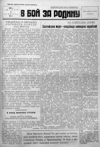 П о с л е п р о ч т е н и я у н и ч т о ж и т ь 1941 г. А В Г У С т 9 С У Б Б 0 т А № 7. ПРОЛЕТАРИИ ВСЕХ СТРАН, СОЕДИНЯЙТЕСЬ! son 30 РОШИ К р а сноф л о т ск а я г а з е т а ЕЖЕДНЕВНО И ЕЖЕЧАСНО Г О Т О В И Т Ь П О Б Е Д У НАД ВРАГОМ Красная Армия, Красный Флот и весь совет­ ский народ защищают свою родину с величай­ шим мужеством и храбростью, превращая каж­ дый вершок родной земли в укрепленный пункт. Немецкие фашистские войска понесли и несут колоссальные потери людьми и вооружением. За шесть недель войны фашистская Германия поте­ ряла свыше полтора миллиона убитых, раненых и взятых в плен солдат. Красной Армией захва­ чено и уничтожено свыше 6 тысяч танков, свы­ ше 8 тысяч немецких орудий. Особенно тяже­ лые потери понесла немецкая авиация. Потери немцев составляют свыше 6 тысяч самолетов. Об огромных потерях немецких фашистских войск говорит тот факт, что немцы все чаще бросают в бой солдат в возрасте свыше 45 лет и юнцов в возрасте 17 лет. Прошло больше шести недель, как немецкие фашистские войска вероломно напали на СССР. За эти шесть недель мир был свидетелем неви­ данных доселе грандиозных и жесточайших бо­ ев. Но предстоят еще более жестокие, еще более упорные бои. Нужно помнить, что победы над врагами не достаются легКо. Нужно помнить об этом и „готовить победу — готовить ежеднев­ но, ежечасно, пока не сверкнет последний сок­ рушительный удар над германским фашизмом,— злейшим врагом нашей страны и всего челове­ чества!" („Правда"). Нужно ковать победу, под­ нимать в сердцах каждого бойца боевой дух, бороться с беспечностью и благодушием, повы­ шать революционную бдительность. На конкрет­ ных примерах героизма, мужества и доблести наших бойцов агитаторы должны показать как нужно выполнять военную присягу, как нужно сражаться с ненавистным фашизмом. Каждый день, каждый час отечественной вой­ ны советского народа против германского фа­ шизма приносит сотни фактов невиданного в ис­ тории героизма, проявляемого воинами нашей армии и флота. Их подвиги и героизм нужно широко популяризировать среди бойцов и коман­ диров, воспитывая их такими же бесстрашными, смелыми, решительными героями, преданными великой партии Ленина — Сталина, своей со­ циалистической родине и великому вождю наро­ дов товарищу Сталину. В ФОНД ОБОРОНЫ С Т Р А НЫ НОВЫЕ ВЗНОСЫ БОЙДОВ, КОМАНДИРОВ И ПОЛИТРАБОТНИКОВ - Бойцы, командиры и по­ литработники продолжают вносить свои сбережения в фонд обороны страны. Тов. Косюков внес в фонд обороны страны облига­ ции займа на сумму 2675 Рублей, тов. Карцев — на 1Q50 рублей, тов. Болотин— на 1000 рублей, тов. Тере­ хов — на 800 рублей. Тов. Орехов уже полностью уп ­ латил за заем Третьей пя ­ тилетки (выпуска четвер­ того года; и внес в фонд обороны облигации займа Третьей пятилетки (выпус­ ка третьего года) на сум­ му 870 рублей. косюков. НА СОВЕТСКИХ МОРЯХ Балтийскоеюре-кладбище немецкихкораблей Балтийский флот один из старейших флотов нашей страны. Он ведет свою ис­ торию от сражения в устье реки Невы. Там 18 мая 1703 года моряки-балтийцы на р ы б а ч ь и х л о д к а х от­ важно напали на два мно­ гопушечных корабля про­ тивника и после жестоко­ го боя взяли оба корабля в плен. С тех пор моряки-бал­ тийцы не раз бесстрашно вступали в бой с сильней­ шим врагом и неизменно побеждали его. Не раз нещадно били бал­ тийцы и немцев. В водах Балтийского моря находило свою же