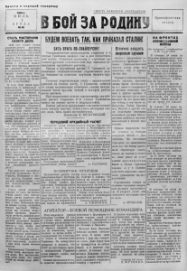 Пр о ч т и и п е р е д а й т о в а р и щ у 1942 Г. И Ю Л Ь 1 СРЕДА № 56 СМЕРТЬ НЕМЕЦКИМ ОККУПАНТАМ! расчет?,, а если кто слабо знает технику — помогают, не счи т а я с ь со временем, как молено быстрее стать в ряды передовых. Командо вание корабля п а - д н я х ко мандира и бойцов орудий ного р а сч е т а представило к на граде нагрудным зна ком „Отличный артилле рист" . Так работают орудийные расчеты Гришакова, Бело зерцева, Потапенко и мно гих других . Сделать свои орудия снайперскими — та кое обязательство взяли они на себя. Успех любой операции зависит от того, насколько бойцы знают свое заведы- вание, умеют наиболее эф фективно применять ору жие в бою. Побеждать вра га можно только отличной боевой выучкой. Сейчас, когда мы должны непре рывно крошить фашист скую нечисть, никакой мед лительности в изучении оружия допускать нельзя . Каждый боец обязан забо титься о том, чтобы как можно быстрее стать мас тером своего дела, учиться по-снайперски уничтожать врага, словом и делом по могать отстающим стать в ряды передовых, делиться о ним всем своим боевым опытом. Североморец! Сделай все, чтобы стать мастером сво- его дела. Все мастерство, всю свою волю, все силы отдай до конца делу побе ды! БОН ЗА Р8ДИІ Краснофлотская г а з е т а СТАТЬ МАСТЕРАМИ СВОЕГО ДЕЛА 1942 год станет годом окончательного разгрома н емецко -ф ашис т с ких войск и освобождения советской земли от ги тлеровских мер завцев. Так при к а з ал това рищ Сталии . И дл я того, чтобы с успехом выпол нить этот приказ , мы долж ны „и зучи ть свое оружие в совершенстве , стать мас терами своего дела , бить в упор фашистско - немец ких захватчиков до полно го их ис требления " . В ходе боев наши кр а с нофлотцы и командиры в совершенстве овладевают первоклассной техникой и быот вр а г а без промаха, наверняка . Так уч а т с я ис к у с с т в у побеяѵдать врага бойцы орудийного расчета, где командиром старшина 2 - й статьи Ермоленко. Зд есь бойцы умеют рабо тать на д в у х - т р е х номерах расчета , ус тр ан ят ь повреж дения, заменять отдельные части орудия . Секрет у с пеха орудийного расчета в том, что командир расчета ежедневно учит и трени рует своих бойцов на бое вых постах , добиваясь ав томатизма в действиях. Дружно работают и бойцы БУДЕМВОЕВАТЬ ТАК, КАК ПРИНАЗАЯСТАЛИН! БИТЬ Ё Р Ш Л О - О Ш Л Е Р Ш ! Специальностью артиллериста старшина 2 - й статьи Гришаков овладел уже в дни отечествен ной войны. Отличный комендор с хорошими ор ганизаторскими способностями был назначен ко мандиром орудийного расчета. Придя в орудийный расчет, т. Гришаков ор ганизовал социалистическое соревнование меж ду бойцами на отличное изучение боевого ору жия. Сочетая теоретическую учебу спрактической работой на боевом посту, т. Гришаков добился от своих подчиненных отличного знания матери альной части орудия, четкой и быстрой работы всего расчета. При подведении итогов соревнования, орудий ный расчет старшины 2- й статьи Гришакова вышел на первое место в подразделении. Бойцы расчета продолжают совершенствовать свою боевую выучку, чтобы стать мастерами сво его дела, бить врага по-снайперски. Комендор II. МЕЛЬТЕВСКИИ. ПЕРЕДОВОЙ ОРУДИЙНЫМ РАСЧЕТ Авторитет среди боііцов командир орудия Белозер цев з а с л ужи л с первых дней прихода в подразделе ние. Он все свое внимание уд ел ял работе с подчинен ными. Непосредственно на боевом посту и зучали ма териальн
