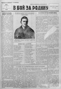 Про ч т и и передай товарищу 1942 г. И ю н ь 4 Ч Б Т В Е Р Г № 4 6 С М Е Р Т Ь Н Е М Е Ц К И М О К К У П А Н Т А М ! БОН ЗА Р О Щ нофлотская газета комсомольцы, б у д ь т е в п е р е д и В огне освободительной войны советского народа против немецко - фашист­ ских оккупантов выросли, в о зм уж а л и комсомольцы на­ ших кораблей и подразде­ лений. Они научились'сме­ ло глядеть в глаза любым трудностям, смертельной опасности. Везде и во всем они показывают личный пример, ведут бойцов за со­ бой. И не случайно бойцы своими боевыми делами хо­ тят быть похожими на ком­ сомольцев, стремятся стать п о д б о е в ы е з н а м е н а Ленинск о — сталинского комсомола. ...В трудной и сложной обстановке выполнял ко­ рабль боевое задание. Фа­ шисты обрушили на ко­ рабль интенсивный огонь береговых артиллерийских и минометных батарей. Не обращая внимания на силь­ ный огонь врага, комсомоль­ цы действовали спокойно и уверенно. Они сделали все, что было в их силах, и Даже сверх сил, чтобы отлично выполнить боевое задание командования. Сво­ им личным примером ком­ сомольцы Влялько, Пащен­ ко, Жуков, Богданов и мно­ гие другие вели за собой краснофлотцев на славные боевые дела. Краснофлот­ цы Тищенко, Андреев, Звя­ гин и старшина 2-й статьи Ермол енк о, воодуш свл ен- ные беззаветной предан­ ностью и мужеством ком­ сомольцев, подали заявле­ ния о приеме их в комсо­ мол. Так действовали комсо­ мольцы одного из кораблей нашей части. Все это—ре­ зультат умелой организа­ ции работы комсомола в на­ пряженной боевой обстанов­ ке. Комсомольцы этого ко­ рабля бьют врага не чис­ лом, а умением. Они, невзи­ рая на боевую обстановку, учатся непрерывно. Этим они готовят себя к бою, этим они готовят победу до боя. Здесь твердо усвоили, что нельзя успокаиваться на достигнутом. Комсомоль­ цы подняли и проводят це­ лый ряд замечательных на­ чинаний, помогающих улуч­ шению качества боевой вы­ учки краснофлотцев. Они организовали изучение ору­ жия, сложных механизмов и приборов, отработали взаимозаменяемость ору­ дийных и пулеметных рас­ четов. Комсомольцы кораблей и подразделений! Учитесь ра­ ботать у комсомольцев это го корабля. Будьте всегда впереди в учебе и бою, ве^ Дите за собой моряков вдохновляя их на новые бое­ вые дела во имя победы над врагом! Б У Д Ь Т А К И М ЖЕ С М И БЕССТРАШНЫМ, КАК ПУЛЕ АНДРИАНОВ! Л ы м чик Краснофлотец Михаил Александрович а награжденный медалью „За отвагу", погиб смертью храбрых. анов, в бою ПУЛЕМЕТЧИК Он пал в бою, как воин и герой. Бесстрашье было для него законом. Пусть он умолк — товарищ боевой, — но он врагу не сдался побежденным. Он видел смерть, но не повел и бровыо. Он, как всегда, лишь думал об одном — разить врага пока хоть капелька есть крови, — пока стервятник не сверкнет костром. Он бился до конца за голубое море, — за беломорский непокорный гул. ДНАРИАК08 Нет, мы оплакивать не будем горе — мы будем мстить кровавому врагу! Пусть голос наш герой и здесь услышит, — что знамя мести, гнева и борьбы мы понесем еще смелей и выше — иоідады хидни кам не может быть! Герои все нам близкие, как дети, и доблесть их, как жизнь нам Дорога. Мы в бой с собой возьмем их силу мести,- чтоб смерть сильней обрушить на врага! Н. ТОЛПЕГИН. HI ФРОНТАХ ОТЕЧЕСТВЕННОЙ ВОЙНЫ (ГІо сообщениям Совинформбюро за 30, 31 мая и 1, 2, 3 июня) В течение 30 мая на Изюм- Барвонковском на правлений наши войска продолжали от