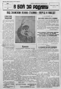 По с л е п р о ч т е н и я у н и ч т о ж и т ь 1942 г. Я Н В А Р Ь 1 Ч Е Т В Е Р Г №1 С М Е Р Т Ь Н Е М Е Ц К И М О К К У П А Н Т А М ! бон за м о ю Краснофлотская газе т а ПОД ЗНАМЕНЕМ ЛЕНИНА-СТАЛИНА - ВПЕРЕД К ПОБЕДЕ! С новымгодом, товарищи! П о с л е д н и й лист кален даря сорван. Наступил Ты сяча девятьсот сорок вто рой год. Прошедший 1941 год вой дет в историю нашей стра ны, в историю великой оте чественной войны как год борьбы с немецкими окку пантами, как год жестоких -испытаний и героических подвигов советских людей. В трудных боях, в кро вопролитных схватках, в упорной борьбе не на жизнь, а на смерть герои ческая Красная Армия и Военно-Морской Флот сло мили наступательную мощь военной машины герман ского империализма, раз веяли миф о ..непобедимос ти" германской армии. Все прогрессивное чело вечество отдает дань ува жения героическому сопро тивлению наших воинов и морально - поли т и ч е с к ому единству всего советского на рода . Освобождением десятков городов, многих сотен дере вень и других населенных пунктов, новым ударом по войскам противника и во- одружением над Ростовом, Т и х в и н о м , К а л и и и но м , Керчью, Феодосией, Калу гой нашего славного совет ского знамени Красная Ар мия показывает свою воз росшую мощь, вселяет еще больше уверенность в окончательном разгроме озверелых банд немецкого разбойничьего империализ ма. С неукротимой ненави стью в сердцах, с именем Сталина на устах стойко и мужественно сражаются с врагом бойцы-североморцы. Здесь , на крайнем Севере, зарвавшийся враг получил жестокий отпор. И впредь мы будем громить его до полного уничтожения. Начало 1942 г. мы отмеча ем началом разгрома немец- ко - фашистских захватчи ков. Красная Армия и Во енно-Морской Флот иод ру ководством вождя и полко водца С т а л и н а выполнят свою великую историче скую миссию освободителей советских земель, освобо дителей народов, стонущих под игом немецкого фашиз ма. В бой — за полный раз гром немецких оккупантов! С новым годом, товарищи с ев ер ом о р цы , с новыми победами! За Сталина, за Родину! вперед к победе! Приказ ЗГО СЕВЕРНЫМ ФЛОТОМ № 0052 В ПОСЛЕДНИЙ ЧАС НАШИВОЙСКА ЗАНЯЛИ КЕРЧЬ И ФЕОДОСИЮ 29 и 30 декабря группа войск Кавказского фронта во взаимодействии с военно-морскими силами Черно морского флота высадила десант на Крымском полу острове и после упорных боев заняла город и кре пость Керчь и город Феодосию. При занятии Керчи и Феодосии особенно отличи лись войска генерала Первушина, генерала Львова м группа военно-морских сил во главе с капитаном 1 - го ранга Басистым. Противник на обоих участках отходит, пр е следуе мый нашими частями. Захвачены трофеи, которые подсчитываются. СОВИНФОРМБЮРО. КОМАНДУЮЩЕМУ КАВКАЗСКИМ ФРОНТОМ генерал-лейтенанту тов. КОЗЛОВУ КОМАНДУЮЩЕМУ ЧЕРНОМОРСКИМ ФЛОТОМ вице - адмиралу тов. ОКТЯБРЬСКОМУ Поздравляю вас с победой над врагом и освобож дением города и крепости Керчь и города Феодосии от немецко-фашистских захватчиков. Приветствую доблестные войска моряков группы военных кораблей капитана 1 - го ранга Басистого, положивших начало освобождению Советского Крыма. Крым должен быть освобожден от немецких захватчиков и их румыно- ит алья неких ири хвостнеи. И. С Т А Л И Н. Иоскна, 30 декабря 1941 года. ♦ ♦ ♦ ИЗ СООБЩЕНИЙ СОВЕТСКОГО ИНФОРМБЮРО КОМАНДУЮЩЕ 31 декабря 1941 г. «Ja истекшие шесть месяцев войны от ударов Се верного флота враг понес 
