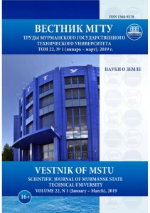 ISSN 1560-9278 VESTNIK OF MSTU SCIENTIFIC JOURNAL OF MURMANSK STATE TECHNICAL UNIVERSITY «■—v VOLUME 22, N 1 (January - March), 2019 16 + '