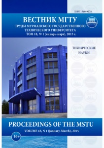 ISSN 1560-9278 ВЕСТНИК МГТУ ТРУДЫ МУРМАНСКОГО ГОСУДАРСТВЕННОГО ТЕХНИЧЕСКОГО УНИВЕРСИТЕТА ТОМ 18, № 1 (январь-март), 2015 г. PROCEEDINGS OF THE MSTU VOLUME 18, N 1 (January-March), 2015