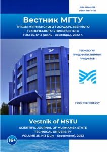 ISSN 1560-9278 elSSN 1997-4736 Вестник МГТУ ТРУДЫ МУРМАНСКОГО ГОСУДАРСТВЕННОГО ТЕХНИЧЕСКОГО УНИВЕРСИТЕТА ТОМ 25, № 3 (июль - сентябрь), 2022 г.
