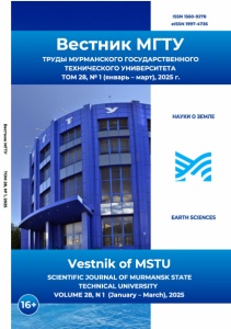 Вестник МГТУ ТОМ 28, № 1,2025 ISSN 1560-9278 elSSN 1997-4736 Вестник МГТУ ТРУДЫ МУРМАНСКОГО ГОСУДАРСТВЕННОГО ТЕХНИЧЕСКОГО УНИВЕРСИТЕТА ТОМ 28, № 1 (январь - март), 2025 г. Vestnik of MSTU SCIENTIFIC JOURNAL OF MURMANSK STATE TECHNICAL UNIVERSITY