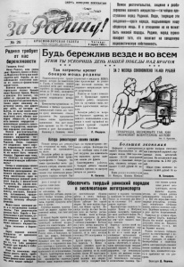 СМЕ Р Т Ь Н Е М Е Ц К И Е ОКК УПАНТ АМ ! — Č -vrr s ' ^ к у № 26 КРАСНОФЛОТСКАЯ Г А З Е Т А П о сл е прочтения уничтожить. Ч е т в е р г 2 апреля 1942 г. Веяное расточительство, хищение и разба­ заривание военного имущества—тягчайшеепре­ ступление перед Родиной. Люди, творящие эти злодеяния— враги народа, подрывающие нашу обороную мощь. Ив отношении их не может быть никакой пощады. Родина, народ сурово понарает того, кто посягает на священную социалистическуюсобственность. Родила трябует от нас бережливости Товарищ боец! Наша Родина, наш народ дают Красной Армии и Воен­ но-Морскому Флоту все необ­ ходимое для борьбы за ос­ вобождение советской зем­ ли от немецко-фашистских захватчиков. Военное имущество — ма­ териальна» основа боевой мощи Красной Армии, Флота и авиации. Это значит, что любой из предметов воен­ ного имущества должен быть также дорог каждому со­ ветскому воину, как дорого ему дело, за которое он бьется, не щадя своей жи з­ ни. Это значит, что каждый советский воин обязан все­ мерно оберегать и сохра­ нять военное имущество — величайшую ценность совет­ ского государства, величай­ шее народное достояние. Всякое расточительство, хищение и разбазаривание военного имущества — т я г ­ чайшее преступление перед Родиной. Люди, творящие эти злодеяния-вра ги наро­ да, подрывающие нашу обо­ ронную мощь. В отношении их не может быть никакой пощады. Суровая кара тому, кто посягает на священную социалистическую собствен­ ность! Бойцы и командиры наших подразделений сознают, что бережное расходование во­ енного имущества по пря­ мому назначению—одно из обязательных условий успе­ шной борьбы с фашистской Германией. Мы имеем мно­ го примеров заботливого, любовного отношения к са­ молету, винтовке, боезапа­ сам, автомашине, продук­ там, хозяйственному иму­ ществу, личному обмунди­ рованию. Много таких примеров да­ но и в сегодняшнем номере газеты. Тем решительнее Должна быть борьба с без­ дельниками и растяпами, от­ бывающими широкое поле Для хищений и разбазари­ вания военного имущества. Будь экономен и береж­ лив! Зорко охраняй военное существо от вражеских Пазутчиков! вг!!ак звни4У ока береги р то> что тебе доверено Диной для борьбы и побе- над врагом! * " ■ ты поможешь еще Рвпче разить врага, приб- день разгрома не- тоіГ Фашистеких оккупан- “ і день нашей победы! Будь бережлив везде и во всем ЭТИМ ТЫ УСКОРИШЬ ДЕНЬ НАШЕЙ ПОБЕДЫ НАД ВРАГОМ ★ ★ ★ ★ ★ ★ ★ ★ ★ Так патриоты крепят б о е в ую мощь родины Рационализаторское предло­ жение, которое дал воентехник т. Гурин, в условиях зимней полярной ночи дает экономию горючего но подразделению за месяц до 30 тонн, экономится масло до 1. тонны и на 10 про­ центов сохраняются моторе­ сурсы. Коммунисты-оружейники тт. Шапкин и Зайцев предложили специальный станок для чист­ ки сразу нескольких стволов пулеметов. Это предложение нашло сейчас практическое применение. Оно дает эконо­ мию времени на 50—70 про­ центов и рост боеготовности. Инженер т. Семенов, ныне принятый в кандидаты ВКП(б). внес предложение по утепле нию масляной системы, что сохраняет материальную часть от разрушения. Радисты во главе с команди­ ром т. Приваловым провели большую работу, направлен­ ную на улучшение связи, эко­ номию дорогостоящих матери­ алов. Большую работу по вопро­ сам бережного хранения, хо­ зяйского использования и эко­ ном