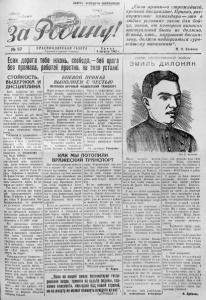 j „Сила армии— в строжайшей, j крепкой дисциплине. Приказ, рас - I по ряжение командира — это в j любых условиях закон для бой- I ца, закон, от которого никаких j отступлений быть не должно. Всякийкто . . . нарушает дисцип- ' лану, должен подвергаться суро вейшему наказанию М. И. Калинин. j СМЕРТЬ НЕМЕЦКИМ ОККУПАНТАМ! Если дорога тебе жизнь без промаха, работа! яростно беи вр vj --3 *І*Р%£* %3 ЧвГ у ГЕРОИ ОТЕЧЕСТВЕННОЙ ВОЙНЫ 'і М И Л Ь Д И Л О Н Я И стойкость, ВЫДЕРЖКА И ДИСЦИПЛИНА Враг, напрягая все свои силы, старается продвинуться вперед к Кавказу, к Волге. За последние дни Советское Информбюро ярко сообщает о стойкости наших бойцов, от бивающих яростные атаки фа шистов на юге. Враг рвется на юг. Бить врага еще сильнее здесь, на севере, работать еще самоот верженнее и тем самым помочь героическим защитникам юга — наша священная обязан ность. Стойкость и дисциплина — основа победы. Летчики-севе роморцы в боях с фашистами покрыли себя неувядаемой славой. 1 всегда там, где бы ла проявлена в бою стойкость, выдержка и дисциплина —■ там была победа. Так было в тот знаменитый сентябрский день прошлого года, когда семерка отважных соколов под командой богаты ря воздуха, дважды Героя Бо риса Сафонова в поединке с 52 фашистскими стервятника ми одержала победу и сбила пять самолетов врага, не по теряв ни одного своего. Так было в июле этого го да, когда летчики под коман дой прославленного сокола Петра Сгибнева в два боевых дня сбили 9 фашистских бом бардировщиков, не допустив их до наших объектов. Сегодня на страницах газе ты мы публикуем материал о потоплении нашими летчиками вражеского транспорта водоиз мещением в 15 .000 тонн. Что обеспечило летчикам эту замечательную победу? Стойкость, дисциплини рован- ность и выдержка экипажей. Она смело смотрели смер ти в глаза, на малой высоте прорвали засаду зенитного ог ня и победили, следуя муд рым словам русской послови цы: «Иди вперед — лучше смерть не берет». Товарищ летчик! Стойкость- мать победы! Стойкость мно жит наши силы. Если ты по лучил боевой приказ, ничто,— ни зенитный огонь, ни истре бители врага,—не могут оста новить тебя перед его выпол нением. Будь стойким н ты Добьешься победы. Стойкость и еще раз стой кость 1 БОЕВОМ ПРИКАЗ ВЫПОЛНЕН С ЧЕСТЬЮ ПОТОПЛЕН КРУПНЫЙ ФАШИСТСКИЙ ТРАНСПОРТ Перед вечером летчики гвар дейцы дважды орденоносцы тт. Гарбуз и Громов, вместе со своими экипажами, полу чили боевое задание — нанес ти удар по транспортам про тивника. Штурмана тт. Ларин и Теп лое быстро проложили мар шрут. Через несколько минут тяжелые машины поднялись в воздух. Мужественные эки пажи вдохновляли слова вели кого Сталина о том, что надо бить врага в упор. На подвиги их звал пример знаменитого летчика севера, дважды Героя Советского Союза т. Сафонова. — Вражеские корабли вид ны, — доложили стрелки-ра дисты Бородин 1 Вышинский. Смело и мужественно пове ли тт. Гарбуз и Громов свои тяжелые самолеты в атаку на вражеский транспорт водоиз мещением в 15 тысяч тонн, шедший в охранении многих фашистских кораблей. Не смотря на сильный зе нитный и автоматный огонь самолеты прорвались к тран спорту, н торпеды, пущеные опытной рукой гвардейцев тт. Ларина и Тецлова, попали точно в цель. Фашистский транспорт нашел свою могилу на дне Баренцова моря. Славные сталинские соколы с честью выполнили боевой приказ. Ст. политрук Толкачев. КА