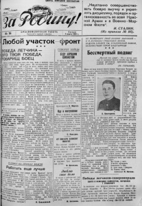 СМЕРТЬ НЕ М Щ И 1 УМ НШ П А Н Т А М 1 л=4*зО N ° 1 6 К Р А С Н О Ф Л О Т С К А Я Г А З Е Т А Прочитай и передай товарищу. С р е д а 3 марта 1943 г. „Неустанно совершенство вать боевую выучку и унреп- лять дисциплину, порядок и ор ганизованность во всей Крас ной Армии и в Военно-Мор ском Флоте". И. СТАЛИН. (Из приказа № 95). Любой участок—фронт ★ ★ ★ ПОБЕДА ЛЕТЧИКА - ЭТО ТВОЯ ПОБЕДА, ТОВАРИЩ БОЕЦ -Куш я уезжал из дома, сын j это нлазывал: «Бей, папа, креl i st яеш . А здесь вот со fSc")a воевать приходиться, іл т іс я своим товарищам шн нз бойцов. Такие же т і можно иногда услышать і некоторых других наших і кнофлотцев. Правильно ли Ііжевпе? Нет, неправ мы : Ди твательно, многим нашим Уаім не приходится непос- Ш'иеняо драться с врагом. і ) тѵ обязанность выполняет в ашшш летчик. Ио может ли ігПіік успешио бить немца, t -амолетегобудет ненсправ- ш , летное поте не вычи- і-ніык.связь не работающей ? £ : он не получит качест- приготовленной пищи, не •Пег хорошо одет? Нет, не leser. п р о л е т а р с к и й ■• Ич писатель ор ь к и й в свое г*я говорил: -В жизни, знаешь ли ты, jeerдаесть место подвигам. Т8' вторые не находят для себя,—те проста § "Иа ИЛИ тРУсы, или не •Иииают жизни...» Л 1,1ЛІІМИ словами велико- ; ‘^мтеля должен призаду- я каждый боец. це бы ты ни находился, ; иы ты ни был по Реальности, знай: T' ti' и,>работы, тебе. этот войны Родина по г» „ Заходи в нем і , п . е1,0иства, для яод- і fi ег°“ в ero IJe зазнавай- ш Да имея стремление , \ шем5- к большему. , ' ‘ краснофлотцу Михаи- 4 : простыв Вручили моло~ • 4 u f Слесарные 1 Ш- 0ІІ Удивился: «Как так, ведь я воевать прие хал». Но по-серьезному взял ся за дело, нашел свое место. Теперь о н—-почетный воин. Правительство наградило его медалью «За боевые заслуги». Или шофер Алексей Аксенов. Когда его автомашина была разбита во время налета фа шистской авиации, он сумел все-так идоставить необходимый груз по назначению, а затем, проработав сутки без отдыха, ввел ее в строй. Аксенов на шел место для своего подвига. В тихом и незаметном до этого все узнали героя. Наши летчики неплохо по воевали за последние дни. 15 их успехах есть твоя доля, товарищ боец. Богатырь воздуха Борис Са фонов, когда его спрашивали о своих победах, отвечал: «Это победа всех нас», и обводил рукой, показывая на нахо дившихся поблизости техни ков, мотористов, шоферов, связистов, стартеристов, бой цов, расчищающих снег. Пом ни, боец, что победа летчика —это твоя победа. Помни, что Родина одинаково спросит с летчика, с бойца на передовой линии фронта и с тебя. Своим самоотверженным трудом соз давай и приумножай высокую честь части, где служишь. Товарищ Сталин в своем приказе № 95 указал нам путь победы над врагом. Вы полняя приказ Верховного Главнокомандующего, совер шенствуй боевую выучку, у к репляй дисциплину, порядок ГОВОРЯТ БОЙЦЫ БУДУ ХОРОШИМ СВЯЗИСТОМ В часть я пришла недавно. Нас ознакомили с задачами подразделения. Я твердо ре шила—как следует Изучить технику линейной связи. Первое время было нелегко учиться, все было новым для меня. Но, несмотря на все трудности, изучила телефон ные аппараты и сейчас хожу на линию. Я горжусь своей специаль ностью,1 повседневно чувствую, что вместе со всеми участвую в войііе. Товарищ Сталин приказал нам систематически совершен ствовать боевую выучку. Счи таю своим долгом учиться еще больше, работать еще лучше для того, чтобы стать квали фицированным связистом. Краснофлотец 
