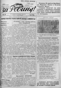 СМЕ Р ТЬ Н ЕМЕ ЦК ИМ ОКК У П АН Т АМ ! ■и N° 47 К Р А С И О Ф Л П р о ч т и и ОТСКАЯ ГАЗЕТА передай товарищу. Ч е т в е р г 1 июля 1943 г. Осталось 25 дней до Дня Воен- но - Морского Флота и 10-летия Северного флота. Товарищ! Встречай эту дату боевыми и трудовыми успехами. Неустанно готовь себя к решаю щим боям с немецко-фашистски ми полчищами. БОЕЦ РЕМОНТНОЙ МАСТЕРСКОЙ! КАЧЕСТВЕННО РЕМОНТИРУЙ БОЕВЫЕ САМОЛЕТЫ! Летчики требуют сделаем Летчик старший т. Федоров на одном лейтенант гз совеща нии предъявил работникам наших мастерских требова ние: ремонтировать матери альную часть самолетов более качественно. Тов. Федоров при- !ТВ>вел пример, когда и з-за ха- И: латности отдельных ремонтни- ®| ков мотор самолета вышел из Щ строя, проработав всего нес колько часов. Нет слов, что большинство “ наших мастеров, ремонтирую- 1 іцпх боевые самолеты, вполне 5| • оеознало всю необходимость , качества ремонта. ІІодразделе- ние, которым руководит т. ІІе- * гин, сдает самолеты в болыиин- стве с отличной оценкой. Сов- ** сем недавно одной из бригад этого подразделения (бригадир рш т. Юргеисон) аварийным ре- —монтом отремонтирован бомбар дировщик. Получив з а ремонт оценку «отлично» бригада свою норму выполнила на 148 про- Iцентов. Можно было бы при- 0 вести десятки таких же при- j(ji иеров, когда комиссии от дей ствующих авиаподразделений восхищаются работой ремонт- |[|рков и дают ей высокую оценку. ІЙІ ^яако факты некачествен- iis'i 010 Ремонта, о которых гово- і:і т- Федоров, у нас еще есть, меются случаи, когда при ходится одну И ту же рабо- Упеределывать но несколько itf/Lu І1ЛППосле «основного» ре- I. . і р 1 производить устранение Й Й » * * - в “ W» факты тер- ' Іы быть не могут. ИьЙ* летчики°^ масвте1ской! . тр Г п тчики требуют от ■ Іаини ТВенно отремонтиро- самолетов. Вним атеІь - Ne.4 уРдеду Ч И В 0 относись к i f ПиЭ1гВл-МАЯКОВСКИЙ писал: А Гйп Да ляп — J*!’ і | , „ , не ВЬ|йдет кор а б л ь , ptlfl а в°здушный — тт и тому подавно. НІІ> ремонт самолетов — f ПгНОе П ответственное дело. СІілы к т о м у > #то>ц, д ,вать их из ремонта й || с °Денкой «ОТЛИЧНО». ^РОЧТИ и ЗАПОМНИ === п ■Муже!т 2 ,^брость> бодрость случаях ду и ГІІ И1 всех тіцеТ[І(л ГІ°требны , токмо *стенаХ1,' !'ІГ ежели не будут I аать от искусства». А. СУВОРОВ. „Отлично** — вот оценка работы этих товарищей Б нашем подразделении боль шую работу выполняют слеса ря-клепальщики. Ремонтируя в боевых частях самолеты, они не считаются со временем, работают по 24 часа подряд и более с тем, чтобы ввести ремонтируемую ими машину із строй в самый кратчайший срок. Самолеты нашим цехом сдаются в боль шинстве случаев с отличным качеством и только 15 — 20 проц. с хорошим качеством. Среди коллектива слесарей-кле- пальщиков особенно надо от метить товарища Юргенсон. Он задание выполняет не ниже 170 проц. и дает отличное ка чество работы. Все отремонти рованные им самолеты введены в строй в срок, а некоторые и досрочно. В паре с т. Юргенсоном ра ботает т. Давыдов. Он также, несмотря на то, что недавно начал работать по клепально- сборочному делу, специальность свою освоил хорошо. Одним из мастеров, про ко торых обычно говорят, что нет того дела, которого бы они не могли сделать, является т. Скри- пкин. Освоив ремонт нескольких типов самолетов он, кроме кле пально-сборочных работ, вы полняет и монтажные работы. В паре с т. Скрипкиным рабо тает т. Скородумов, который очень хорошо и внимательно относится к пор