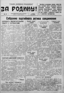 Смерть немецким оккупантам! ЗЯ ГОДИНУ! № 5 / КРАСНОФЛОТСКАЯ ГАЗЕТА Прочти и передай товарищу. ПИТИИЦЙ 2 июня 1944 г. Партийные организации должны всеми мами партийной работы повседневно помогать командирам выполнить указания Народного Комиссара Военно-Морского Флота Адмирала флота тов, Кузнецова о всемерном повыше ни роли старшин и сержантов в боевой жиз ни, в воспитании краснофлотцев. Собрание партийного актива соединения УЛУЧШИ ТЬ ВОСПИТАТЕЛЬНУЮ РАБОТУ С СЕРЖАНТАМИ Тридцатого мая состоя лось собрание партийного актива наших частей. Доклад о воспитательной работе со старшинами и сержантами сделал тов. Пильвицкий. В прениях по докладу выступило 16 сержантов, старшин и офицеров. Несмотря на то, что в работе партийных органи заций с. младшими коман дирами имеется некоторое улучшение, собрание приз нало, что в работе партий ных и комсомольских орга низаций по воспитанию сер жантского состава имеются крупные недостатки . Активно развернувшиеся после доклада прения пока зали, что отдельные пар торганизаций. слабо работа ют с младшими командира ми, не оказывают им долж ной помощи в военном, по литическом и культурном росте, недостаточно вовле кают сержантов—коммунис тов и комсомольцев в ак тивную партийную и ком сомольскую работу. В конце собрания высту пил генерал-майор авиации тов. Александров. Он дал ряд указаний по дальней шему улучшению воспита тельной работы с младши ми командирами в наших частях и подразделениях. Сделать правильные вы воды из актива- задача пар тийных организаций. Партийные и комсомоль ские организации обязаны воспитательную работу с младшими командирами про водить в строгом соответ ствии с указаниями Народ ного Комиссара Военно- Морского Флота Адмирала флота тов. Кузнецова. Всю воспитательную рабо ту со старшинами и сержан тами мы должны строить так, чтобы побиваться лд/іь.- нейшего улучшения -обелу- гастей в летных ж иваДня __ период нарастающих бое вых "действий. Всю работу со старшинами и сержан тами мы обязаны подчинить успешному решению задач, поставленных в первомай ском приказе Верховного Главнокомандующего Ма р- шала Советского Союза товарища Сталина. ПАРТОРГАНИЗАЦИЯ ПОМОГЛА Наш цех получил в ре монт моторы новой кон струкции. Чтобы лучше обеспечить успех ремонта было созва но открытое партийное соб рание. На нем посоветова лись, как лучше организо вать работу. Коммунисты тт. Попов, Мосин Иван, Серегин были знакомы с конструкцией к)!того тѵютора. По своей инициативе они решили обучить бойцов и младших командиров вне урочное время. В обеден ный перерыв и после рабо т ы практически, у мотора, доказывали они, как надо работать, беседовали с бой цами по вечерам и в землян ках. Большую помощь в освоении моторов оказал старшина тов ремонтиро помог- ремонт Ремонт- парторг цеха Чудаев. Чтобы лучше вать следующие моторы, на испытание первого отремон тированного мотора были посланы опытные комму нисты. Парторганизация ла цеху освоить сложных моторов, ники цеха повседневно со вершенствуют свою специ альность. Сейчас на восста новлении этих моторов вы полняет полторы...две нор мы каждый. На достигну том мы не остановимся. Бу дем и в дальнейшем совер шенствовать ремонт и до биваться еще лучших ре зультатов. Техник-лейтенант Г. РОМАНОВ. Что читают сержанты Младший сержант т. Маркой в этом году прочитал книги: „