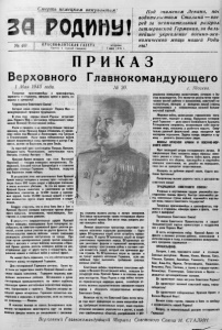 ?' dl немецким оккуп антам ! Р О Д И В Ы ! № 40 К Р А С Н О Ф Л О Т С К А Я Г А З Е Т А Прочти и передан товарищу. вторник мая ІЯ;5 г. Под знаменем Ленина, not водительством Сталина — впе ред за окончательный разгром гитлеровской Германии , задаль нейшее укрепление военно-эко' комической мощи нашей Роди ны! П Р И К А З В е р х о в н о г о Главнокомандующего 1 Мая 1945 года. Товарищи красноармейцы и краснофлотцы, йержанты и старшины, офицеры армии и флота, ге нералы и адмиралы! Трудящиеся Советского Союза! Сегодня наша страна празднует Первое Мая — международный праздник трудящихся. В этом году народы нашей Родины встречают день Первого Мая и обстановке победоносного завер шения Великой Отечественной войны. Ушли в прошлое и не вернутся больше тяжелые времена, когда Красная Армия отбивалась от враже ских войск под Москвой и Ленинградом, под Грозным и Сталинградом. Ныне наши победоносные войска громят вооруженные силы противника в центре Гер мании, далеко за Берлином, на реке Эльба. За короткий срок освобождены Польша, Венгрия, большая часть Чехословакии, значительная часть Австрии, столица Австрии — Вена. Красная Армия овладела при этом Восточной Пруссией — гнездом немецкого империализма, По меранией, большей частью Бранденбурга и главными районами столицы Германии — Берлина, водрузив над Берлином знамя победы. В результате этих наступательных боев Красной Армии немцы потеряли в течение трех— четырех ме сяцев более 800 тысяч солдат и офицеров пленными и около миллиона убитыми. За это же время части Красной Армии захватили и уничтожили до 6.000 вражеских самолетов, до 12.000 танков и самоход ных орудий, более 23.000 полевых орудий и огром ное количество гругих видов вооружения и снаря жения. ѵ * { Следует отметить, что в этих боях бок о бок с Красной Армией успешно наступали против общего врага польские, югославские, чехословацкие, бол гарские и румынские дивизии. В результата сокрушительных ударов Красной Армии немецкое командование было вынуждено пе ребросить на советско-германский фронт десятки ди визий, оголяя целые участки на других фронтах. Зто обстоятельство помогло войскам наших союзников развернуть успешное наступление на западе. При этом путем одновременных ударов против немецких войск с востока и запада войскам союзников и Крас ной Армии удалось рассечь немецкие войска на две, оторванные друг от друга части и осуществить сое динение наших и союзных войск в единый фронт. Не может быть сомнения, что это обстоятельство означает конец гитлеровской Германии. Дни гитлеровской Германии сочтены. Более по ловины ее территории занято Красной Армией и вой сками наших союзников. Германия лишилась важ нейших жизненных районов. Оставшаяся в руках гитлеровцев промышленность не может снабжать немецкую армию достаточным количеством вооруже ния, боеприпасов и горючего. Людские резервы не мецкой армии исчерпаны. Германия полностью изо лирована и оказалась в одиночестве, если не считать ее союзницы — Японии. В поисках выхода из своего безнадежного поло жения гитлеровсние авантюристы идут на всевоз можные фокусы вплоть до заигрывания с союзника М 2 0 . ми, стремясь вызвать разлад в лагере союзников. Эти новые жульнические трюки гитлеровцев обрече ны на полный провал. Они могут лишь ускорить раз вал немецких войск. Лживая фашистская пропаганда запугивает н