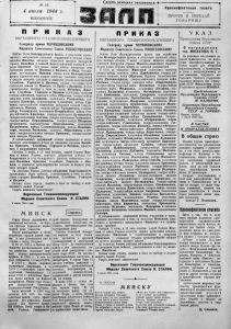 № 53 4 июля 1944 г. вторник Смерть немецким оккупантам! К р а с н о ф л о т с к а я г а з е т а ПРОЧТИ И ПЕРЕДАЙ ТОВАРИЩУ ВЕРХОВНОГО ГЛАВНОКОМАНДУЮЩЕГО Генералу армии ЧЕРНЯХОВСКОМУ Маршалу Советского Союза РОКОССОВСКОМУ Войска 3 - го Б е л о р у с с к о г о фронта, в результате стреми тельного наступления танковых соединений и пехоты северо- западнее Минска , овладели ооластным центром -Белоруссии городом Вилейка и важной железнодорожной станцией и го родом Красное . Гѳм самым наши войска перерезали пути сообщения немцев нз Минска в Вильно п Лида. Одновре менно юго-западнее Минска войска 1-го Белорусского фронта стремительным ударом конницы, танковых соединений п нехоты овладели городами и важными узлами коммуникаций Столбцы, Город эя и Несвиж, отрезав тем самым пути сообщения немцев из Минска на Брест и Лунинец. В этом стремительном маневре и боях за города Вилейка, Крас ное, Столбцы, Город зя и Несвиж отличились танкисты генерал-лейтенанта танковых войск Обухова , генерал-майора танковых войск Асланова , полковника Родионова , пол ковника Кремера , подполковника Соколова , майора Тур- чина; кавалерийские соединения кубанских казаков генерал- лейтенанта Плиева, генерал-майора Тутаринова , генерал- майора Головского , полковника Поприкайло; войска гене рал-лейтенанта Крылова, генерал-лейтенанта Лучинского, генерал-полковника Батова , генерал-полковника Галицкого, генерал-майора Перхоровича , генерал-майора Шварева; артиллеристы подполковника Нарходжаева , полковника Вахроме ева , майора Соломонникова , майора Подопри- гора, капитана Яковлева, капитана Ибрагимова и лет чики генерал-полковника авиации Хрюкина, генерал-полков ника авиации Ру д енк о . В ознаменование одержанной победы соединепия и части, наиболее отличившиеся в боях за овладение городами Вилей ка, Красное , Столбцы, Город зя и Несвиж, предста вить к награждению орденами. Сегодня, 2 июля, в 23 часа столица нашей Родины Мос ква от имени Родины салютует доблестным войскам 3-го ' Белорусского и 1-го Белорусского фронтов, овладевшим горо дами Вилейка, Красное , Столбцы, Городзя и Нес виж, — двадцатью артиллерийскими залпами из двухсот двад цати четырех орудий. За отличные боевые действия объявляю благодарность руководимым Вами войскам, участвовавшим в боях за овла дение городами Вилейка, Красное, Столбцы, Городзя и Несвиж. Вечная слава героям, павшим в боях за свободу и неза висимость нашей Родины! Смерть немецким захватчикам! Верховный Главнокомандующий Маршал Советского Союза И. СТАЛИН. 2 июля 1944 года. МИНСК Город Минск расположен в I равнинной местности, на бере гах притока Березины—мелко водной реки Свнслочи. Минск принадлежит к числу старейших городов нашей стра ны. О нем упоминается еще в «Слове о полку Пгореве». В 80 гг. XJX ь. в Минске на чинается организованное рабо чее движение, возникает пер вый социал - демократический кружок. В 1898 г. в этом го роде собирается I съезд РСДРП. В 1918 г. Минск пережил германскую оккупацию, а в 1919 г .—польскую. Город был опустошен белополяками. 11 июля 1920 г. доблестная Крас ная Армия изгнала из Минска интервентов. Минск стал столи цей Белорусской Советской Социалистической Республики. Число жителей к 1939 году достигло 239 тыс. За годы советской власти город преоб разился. Его украшали новые здания: Дом Красной Армии, ЦК KU(6JB, Театр оперы и ба лета, Госбанк, У