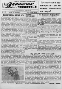 С М Е Р Т Ь Н Е М Е Ц К И М О К К У П А Н Т А М ! ЗППѲЛЯГЬЯ К Р А С Н О Ф Л О Т С К А Я Г А З Е Т А № 73 2 сентября 1944 года, суббота. ПРОЧТИ И ПЕРЕДАЙ ТОВАРИЩУ Луч советского про жекториста— для не мецкого самолета— ✓ луч смерти! Прожектористы, настала ночь! Наступает полярнаЛ ночь. По примеру прошлых лет не нецкая авиация может попы таться использовать ее для проникновения к нашим об‘ ектам и нанесения им бомбо вого удара. Прожектористы призваны обеспечить боевые действия истребительной авиации и зе нитной артиллерии по унич тожению фашистских «ноч ников». Немцы непрерывно совер шенствуют тактику ночных н а летов. Б первый период вой ны они летали на малых вы сотах. Понеся большие поте ри, перешли к налетам эшело нированным по времени и на высотах от 3 0 0 0 до 4 500 мет ров. Когда прожектористы и в этих условиях стали успешно ловить, а зенитчики и летчи ки сбивать попавшие в луч фашистские самолеты, враг сократил ночные налеты. З и мой 1 9 4 3 - 1 9 4 4 года лишь одиночные самолеты етважпва- лиеь появляться над советским Заполярьем, да и то на высо те до 6000 метров. Какую враг изберет такти ку в полярную ночь 1944 г о да, мы, конечно, не знаем. Нам нужно быть готовыми быстро обнаруживать гитлеровские самолеты, вовремя ловить их в световые клещи на каких бы высотах они ни появлялись, какие бы ни применяли манев ры для уклонения от лучей прожекторов. Схватить врага в луч, не дать ему вырваться из полосы освещения— значит помочь летчикам и зенитчи кам его уничтожить, прежде чем он достигнет об'екта. Для того, чтобы умело вое вать, любой бой завершать победой, надо неустанно учить ся, тренироваться. Каждое по явление в воздухе своего само лета— использовать для трени ровки расчетов пеленгаторов: от них многое зависит в бою; отрабатывать наблюдение, чет кое взаимодействие в поиске и поимке цели. Ладо заботли во сберегать материальную часть, тщательно готовить ее к боевой работе: исправные, хорошо налаженные .механиз мы в бою не подведут. Близость нашей оконча тельной победы над фашист ской Германией, резкое паде ние активности фашистской авиации в Заполярье ни в коей мере пе должны успо коить прожектористов. Даже смертельно раненый зверь не перестает быть опасным. В страхе перед неизбежной ги белью враг может напрячь свои слабеющие силы, снова и сно ва попытаться напасть на базы флота, аэродромы, тылы, чтобы этим продлить дни свое го существования. Бполне правильно поступа ют прожектористы, которыми командуют тт. старший сер жант Забродин, сержанты Году нов, Чигирев, Брей кин, млад шие сержанты Волостной и многие д р у г и е . ' Они серьезно подготовились к ночным боям, бдительно несут вахту, еже дневно тренируются, а как темнеет, прожектористы—па- чеку, готовы к поимке само летов врага. Хуже обстоит дело на прож- станциях, которыми команду ют тт. младшие сержанты Гор- бачик, Рудь и Мамонтов. У них еще не в полном поряд ке материальная часть, в ра боте подчиненных им красно флотцев видно благодушие. Война идет к концу. Крас ная Армия подошла к грани цам Германии. Впереди самые ожесточенные, самые трудные бои ио уничтожению отчаян но обороняющегося немецкого зверя. Успешной поимкой ночных стервятников, помощью зенит чикам и летчикам в уничто жении врага, ускорим оконча тельную победу! Майор Г. И. Телегин. Комсорг авиаполка старший лейтенант Ставііцкин провожает в боевой полет