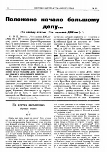 Положено начало большому делу: отклик на статью «Что сделано ДЭБом» // Вестник Карело-Мурманского края. - 1925. - № 30. - С. 6-8.