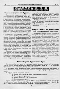 Листок ДЭБ. Зимняя экскурсия на Мурман // Вестник Карело-Мурманского края. - 1925. - № 35. - С. 12.