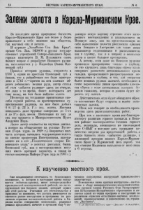 14- ВЕСТНИК КАРЕЛО-МУРМАНСКОГО КРАЯ. Л° 6. Залежи золота вКарело-МурманскомКрае, З а последнее время природные богатства Карело-Мурманского К р а я все более и более привлекают к себе внимние как общества , т ак научных сил и печати. В журнале ,.Хо зяй с т в о Сев. Зап . К р а я * , органе Сев. З ап . ЭКОСО и других государ ственных учреждений Северо-Западного Края , горным инженером В . М. Кузьминым снова поднят вопрос о разработке Воицкого рудни ка. находящегося у д. Надвойцм (бывш. Оло нецкой губ.) Приведя историю рудника, открытого в 1737 г. одним из крестьян Олонецкой губ. и ука зав , что к разработкам его было приступ- лено в 1742 г .— причем на нем главным об разом добывалась медная руда, автор статьи об этом «забытом руднике» здесь же говорит, что даже в то время, более полтораста лет тому назад, на нем было найдено золото. Несмотря на тогдашние примитивные спо собы горной работы, з а кратковременное су ществование рудника, на нем было добыто 4 п. 27 ф. 2 3 л. 1 1 /'2 зол. золота. Местами попадались даже крупные самородки до 1-го и до 3 1/ '2 фун. весом. Некоторые из них до сих пор хранятся в Минералогическом Музее Академии Наук. Д але е а в т о р ссылается на научные данные, а именно на обнаружение на руднике Б у т а е вым (Горн , журн. з а 1828 г.), кварцовых жил, часть которых оказалась содержащими золото, на мнение профессора Инострандева , высска- занпое им в его ..Геологическом очерке По- венецкого уе зд а * о золотых рассыпях бывш. Олонецкой губ., как о месторождениях могу щих иметь прочный хар ак тер , а также на статыо инженера Майера (Горн. жур. за 1907 г.), дающую ясную картину строения этого инте ресного месторождения и указывающего на Воицкую жилу, как на представляющую из себя выполнение полости расслоения сланцев типа Бендиго в Австралии, где такие жилы называются седловидными и располагаются, как в глубину, так и в ширину в несколько рядов и имеют большое протяжение. А потому, если даже на Воицком руднике произошло прекращение «жилы» в глубину, то это случилось лишь благодаря сбросу вдоль северного размытого антиклинального крыла складки, прекратившего распространение ме сторождения в глубину, и что, для открытия более мощных рудных залежей, необходимо в точке пересечения линии простирания плоско сти сброса с осью антиклинала заложить бу ровую скважину, которая и должна будет пе ресечь эту залежь. Действительно, если будет обнаружен сброс, то несомненно будут открыты и новые золо тоносные залежи. И т а к все говорит з а необходимость произ водства здесь разведывательных работ. При том и настоящее время все благопри я тствует развитию горного промысла в Воиц ком районе: высокоразвитая техника горного дела, водопад а , имеющиеся на многоводной реке С - В Ы Г и могущие дать громадное ко личество энергии для предстоящей работы, а также близость этого «забытого рудника», к жизненной артерии нашего Карело-Мурман ского К р а я— к Мурманской жел. дороге, так как станция Надвоицы находится от него лишь в 6 верстах. К изучению местного края. Уже неоднократно отмечалось то безпомоіцпое положение, в котором в настоящее время оказы вается любитель-краевед, живо интересующийся краеведческой последовательной работой, но не во оруженный тем багажем знаний, который нужен для этой работы. Учитывая это обстоятельство и принимая во внимание, что достать имеющиеся на книжном рынке 