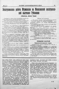 № 2 - 3 ВЕСТНИК КАРЕЛО-МУРМАНСКОГО КРАЯ. 15 Экскурсионная работа Мдаанцев наМежсоюзнойэкскурсион ной выставке Губсошов (Ленинград, Дворец Труда) Открывшаяся во Дворце Труда экскурсионная выставка пред ставляет собою огромное культурно-просветительное дело. Внимательный посетитель выстввкн поймет и убедятся в том, что всякое лихо оставлено памп позади и дело роста культурного самосознания трудящихся Республики пдет буйною порослыо. „Домоседству" рабочих и их семей нанесен решительный удар и то, о чем мечтал Черпытовскнй в своем „Что делать", уже со- воршплось. Он говорил и зна»: „Поднимайтесь из вашей трущобы, друзья мои, поднимайтесь... Діыходнте на вольный белый свет)." Экскурсия вывела „на вольный белый свет" наших рабочих,— Пусть по все еще из них поняли ее живительное значение, но не далеко то время, когда экскурсировать станет у нас и стар и мал Когда всматриваешься в одни только диаграммы, рисующие тягу рабочих і: художественным экскурсиям, невольно чувствуошь. как далеко куда-то уходит воззвание Народного Комиссара по Просвещению, которое было расклеено по стенам города еще в 19.17 году. Воззвание это призывало к самосознанию, говорило массам о том, что нам необходимо беречь сокровища прежней культуры. Воззвание расскрывало перед массами, то не далекое будущее, которое ждет Республику трудового парода: „Скоро самыѳ неве жественные, которых держали до сих нор в темноте, поднимутся и поймут, насколько искусство является и с т о ч н и к о м радости, си лы п мудрости... Сохрзпнте для себя и ваших потомков красоты вашей земли!!!"—Революция но только сохранила, но подняла па ши массы до понимания художествепных сокровшц, научила их и ценить и любить. Л задачу данной статьи пѳ входит описание открывшейся выставки в целом. •ідесь хочется сказать лишь о том, с чем выступили на вы ставке Мурманцы. Наше выступление явилось отличным от прочих выставочных материалов, хотя-бы уже по одному тому, что мы пашу заботу н работу по экскурсионному делу сумели совместить с заботой и работой по краеведческому делу. Иными словами, мы показали, как п куда за истекшее теплое время экскурсировали мурманские железнодорожники и каковм наши задачи в дело привлечения общественного интереса к Карело-Муранскому краю. 1! нервом случае перед посетителями выставки была развер нута картина последовательного процесса экскурсиронаиня мур- мапцев (подготовка, проведение экскурсии, выводы). Во втором — работа Д‘эба. П о д г о т о в к а . 1. Еще в 2-і году мы дали на места организационно плановые и обще-методические указания к проведению экскурсий. 2. В своем журнале мн поместили агитационную статью „Организации экскурсий" (см. Вестник Карело-Мурмапского Края № 13, 25 г.) 3. В журнале же дали статью—плаиовку (см. Вест пик Каре ло-Мурманского Края № 15, 25 г.) 4. В своем Бюллетене подробно разработали все организа- цнонно-тсхнпческне вопросы предполагаемых экскурсий, (см. Бюллетень). 5. На дорожном культсовещании был поставлен специальный до клад об экскурсионной работе на отпускное теплое время, резо" люцип но докладу своевременно были разосланы па моста. (>. Собрали сведения об экскурсионной работе, намечаемой: а) Бюро дальних экскурсий Наркомпроса. б) Бюро дальппх-же экскурсий Главполитпросвета, в) Крымским Советом Профессиональных Союзов и Крымкурсо. 7. Установили постояяпую