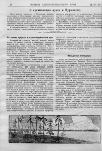 18 ВЕСТНИК КАРЕЛО-МУРМАНСКОГО КРАЯ № 19—20 К организации музея в Мурманске. После долгого ожидания, в Мурманске, наконец, приступлено к оборудованию местного краеведческого музея. Необыкновенно интересный край должен получить в новом музее свое полное и наглядное отражение. Организаторам ѳтого нового культурного учреждения в Мурманске следует позаботиться о насыщении действи тельным краеведческим материалом музея. В противоположность музею Мурманской Биологи ческой станции, краеведческому музею предстоит собрать экспонаты как морские, так и материковые. Население его быт и хозяйство внутренних частей Мурманске! губернии, представляют в музейном отношении не мень- ший интерес, чем население побережное. Коллекции, относящиеся к лопарям и самоедащ будучи специально составленными, представя собоі научную ценность. Кроме того, собирая такие коллекций в будущем, музей, сможет обменивать их или продаваті музеям других районов страны. Об охране природы в карело-мурманском крае. Поднятый на страницах местной краевой печати вопрос об охране природы и памятников древности, является для нашего края чрезвычайно важным и своевременным, если не сказать, запоздалым. Если в в пределах Карельской Республики встречается масса памятников старинного искусства, архитектуры, быта и т. д., то на территории всего Карело Мурманского края можно насчитать не меньшее количество об“ектов природы, нуждающихся в охране. Среди многих других заслуживающих внимания и охраны элементов природы нашего края, особо выде ляются, нуждаясь в немедленных мерах по охране, два следующих явления. 1) Уже неоднократно поднимавшийся вопрос о созда нии з а п о в е д н и к а для д и к и х северных оленей. Организация подобнаго заповедника предполагалась в бассейне оз. Имандра, но к сожалению, вопрос этот до сих пор остается нерешенным. Между тем затраты на создание такого заповедника будут весьма незначительны. 2) Ре ли к т ов о е оз. Могильное на острове Кильдине, которое необходимо во чтобы-то ни стало об“явить заповедным. Е ю огромная научная ценность заключается в необыкновенном разнообразии населяющего озеро животного и растительного мира и условий, опреде ляющих существование этого разнообразия. В оз. Мо гильном сочетается элементы типично-морского-солено- вато-водного и пресноводного мира растений и животных. Об“ясняется это тем, что озеро в давно минувшие эпохи истории земли представляло собою часть моря и отде лилось от него лишь благодаря поднятию суши. Оба эти заповедных места имеют огромное, чуть-ли не мировое значение. Дикие северные олени истреблены почти вовсе и встречаются лишь в некоторых лесотунд ряных областях Сибири. Озеро Могильное является, по свидетельству проф. К. М. Дерюгина, единственным в мире реликтовым водоемом, где так многообразно и с такою наглядностью сочетаются различные биологиче ские и гидрологические элементы. Названный профессор считает его „настоящим чудом природы, заслуживаюпші внимания и охраны.“ В нашем крае найдется еще не малое количестве проявлений природы, достойных охраны. „Областноі Комиссии по охране памятников природы искусства і старины", созданной при Лепингр. Отделении Главнауки есть над чем поработать в нашем крае. Имандрская Экспедиция. Только что закончились работы текущего лета эксие- диции по изучению 