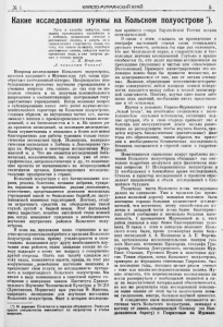 Хордикайнен А. Какие исследования нужны на Кольском полуострове : схема и маршруты // Карело-Мурманский край. - 1927. - № 1. – С. 5-7.