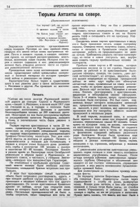 14 КАРЕЛО-МУРМАНСКИЙ КРАЙ Тюрьмы Антанты на севере. (Воспоминания Как черный гроб, как жугкий остов В далеких вьюгах, в синих снах На Белом море стынет ост ров, Купаясь в ледяных волнах. (Ив. Молчанов -о тюрьме Мудьюг). Эсеровское правительство, организовавшее п о х о д г енерала Миллера на наш крайний север, покрыло его целой сетью вновь выстроенных тю рем. Почти в каждом городе, в каждом нас елен ном пункте, на который распространялась власть белых, возникала новая тюрьма. Истории этих тю рем и именам сидевших в них революционеров д о лж н о быть о тв ед ен о д олжн о е место на страни цах революционной летописи. Приводимые нами ниж е воспоминания з а л ож ников представляют с обой чрезвычайно инт ере с ный и богатый материал по истории граждан ской войны и революции на севере. Характеристику белых тюрем и существовав шего в них режима дают в своих воспоминаниях т. Мослевин и другие. Мы приводим их воспоми нания полностью. Печенга. ;*Сейчас ж е после занятия Мурманской ж е л е з ной доро ги д о станции Сороки и Мурманского края,— пишет т. Мослевин, в начале июля 1917 года по станциям ж. д., в городах и поселках было ар е стов ано англичанами, финнами и русскими бело гвард ейцами человек д о 200 советских д еят е лей . Нек оторы е и з них были расстреляны сербами по ра сп оряж ению капитана Мещерина, жившего в Кеми, а значительная часть была уве зена в Печенгу. Первую партию арестованных в числе 22 ч е ловек, приве зенную из Мурманска на тральщике, поместили за отсутствием специальной тюрьмы, на ч ер д ак е недо с тро енно го дома , принадлежащего Трифоно -Печенг скому монастырю. Этот дом н ахо дится версты з а полторы от деревни Печенги и предназначался у монахов для богомольцев, в первом и втором э таж е большого дома р а зм еща лись с ер бы в количестве 100 человек и юнкера в количестве 8 0 —90 человек. Последние бежали в р а зн о е время из Ленинграда после Октябрьской революции и о б р е л и приют у Мурманского эс- эровского совета , в частности, у генерала Звягин ц е в а—военрука при военкомиссаре Герасимове. По о тн ош ению к прибывшим деятелям Совет ской власти юнкера были о с о б енн о жестоки. Окликами, площадной бранью встретили они при бывших. У всех был прои зв ед ен самый тщательный обыск , было з а п р ещ е н о разговаривать, курить и при каждом у д обн ом случае юнкера прибегали к прикладам и н ещ а дн о избивали того или другого аре стованного . По ночам арестованные буквально дрогли от холода , ночуя при открытом окне, стекла из которого были выбиты теми ж е юнке рами. Постельных принадлежностей не было и, чтобы согреться, наши товарищи всю ночь на- заложников). пролет ворочались с боку на бок и разминали свое тело. Вставать ночью запрещалось . Несколько дней подряд арестованных гоняли в лес на болото резать торф и складывать его на просушку. Кор мили плохо. Ожидалась новая партия арестованных и ввиду этого было приказано начать новую постройку тюрьмы. Отведено место, получены кирки, лопаты, тачки и началась в буквальном смысле слова каторжная работа, не прерывающаяся ни днем ни ночью. Требовалось разрыть песчано каменную гору, из песка и камня построить вал, внутри вала создать тюрьму приблизительно человек на полтораста. Прибыла новая партия в 48 человек, которых немедленно послали на ту ж е стройку. Надсмотр щиками за работой и за арестованными были: русские оф