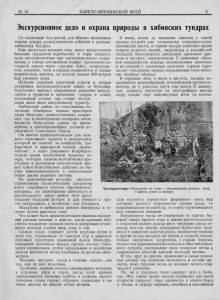 И. Эйхфельд Экскурсионное дело и охрана природы в хибинских тундрах // Карело-Мурманский край. - 1929. - № 10. – С. 9-11