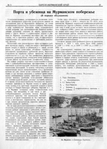 Порта и убежища на Мурманском побережье / Ломпо-Трофимов, Ветров Я. // Карело-Мурманский край. - 1930. - № 3. - С. 28-29 ; № 4/5. - С. 28-30.
