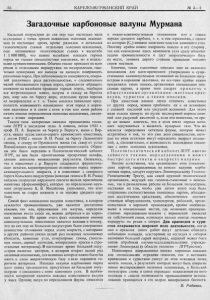 50 КАРЕЛО-МУРМАНСКИЙ КРАЙ № 3— 4 Загадочные карбоновые валуны Мурмана Кольский полуостров до сих пор еще настолько мало исследоваи с точки зрения выявления полезных ископае мых (в настоящее время, кроме разведок и детальных геологических съемок отдельных полезных ископаемых, еще незакончена геологическая съемка в масштабе 1 : 1 ОООООО), что важны малейшие находки горных пород не только специалистами геологами, но и отдель ными путешественниками. Обычно геолог проходит по всем рекам и отдельными маршрутами по водоразделам, тща тельно осматривая все выходы на дневную поверхность различных пород. При заболоченности поверхности, покры той различного рода растительностью, и следовательно малой обнаженности горных пород, приходится обращать внимание на малейшие признаки горных пород, подбирая все встречающиеся камни, валуны и гальку на берегах рек, озер или по берегу моря, отдельные куски породы на водоразделах и т. п. Такие находки позволяют пред полагать возможность нахождения этих пород в корен ном залегании и в связи с этим в том или ином районе начать поиски определенных полезных ископаемых, связан ных с этими породами. Такого типа интересные находки произведены геоло гами ЛГРТ в последние годы. А именно, летом 1931 г. проф. П. А. Борисов на берегу р. Варзуги, выше с. Вар- зуга, нашел кусок светло-серого кремнистого известняка, а летом 1932 г. геолог В. И. Рыцк на берегу Ледовитого океана, к северу от Орловского маяка (на север от устья ГІоноя) нашел кусок известняка коричневого цвета. Образ цы эти были переданы в Палеонтологический кабинет ЛГРТ, из них были приготовлены прозрачные шлифы, давшие довольно неожиданные результаты. Оказалось, что в известняке с р. Варзуги содержатся фаунистиче- ские остатки, характеризующие отложения пород верхне каменноугольного возраста, а в известняке с северного берега Кольского полуострова (находка геолога В. И. Рыцк) найдены скорлупки наружного скелета мелких простейших животных (фораминифер), которые по определению науч ного сотрудника А. В. Михайлова указывают, что этот известняк не старее нижнего и не моложе среднего кар бона. Самый факт нахождения валунов известняка, в котором нуждается промышленность, уже является достаточно важным, гак как, прослеживая эти валуны, определяя возможные места сноса их, можно добраться и до корен ных выходов. Но кроме этого факт нахождения именно каменноугольных известняков является важным и потому, что до сих пор на Кольском полуострове были совершенно неизвестны отложения пород этого возраста, с которыми в других районах связан целый ряд полезных ископаемых (бокситы, каменные угли, огнеупорные глины, стеколь ные пески, серный колчедан, минеральные краски и стро ительные материалы). В настоящее время Кольский полу остров является центром, в котором открыт целый ряд полезных ископаемых, для освоения которых важно было бы иметь и свою энергетическую базу в виде хорошего го рючего материала. Находки валунов карбоновых пород дают повод предполагать присутствие на Кольском полу острове и связанного с ними каменного угля. В особен ности интересной является находка известкового валуна у мыса Орлова; валун по определениям фауны относится к нижне-каменноугольиым отложениям или к самым верхам среднего карбона, т. е. к тем горизонтам, с одним из которых (С,) связано 
