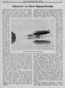 Визе В. «Малыгин» на Земле Франца – Иосифа // Карело-Мурманский край. - 1931. - № 9/10.- С. 59-62.