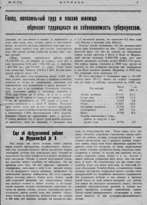 N° 23 (75). М У Р М А Н А Голод, непосильный труд и плохие жилища обрекают трудящихся на заболеваемость туберкулезом. усилиями лес для пашни и стройки а кормящейся у годы: здесь рыба, дичь, покосы, дорога к ближайшему такому же поселку крепких, накаленных тяжелыми усло виями ."іодеГі, наконец n ow , ка к таковая, придвинуты к иоде. Нот почему путями сообщении должны быть вод ные артерии. Общая площадь описываемого района равна 1 2 . 1 0 2 . 3 7 0 дес., из которых на илощадь коды рек и озер приходится 0 . 1 4 или 1 . 3 9 4 . 3 3 2 дес. и, округляя, 1 . 4 0 0 . 0 0 0 дес., или 1 3 . 4 Г»0 кн. верст. Точно число озер неизвестно. Считают 2 . 2 0 0 - и 1 . 9 0 0 . П.; них одних рудных озер не менее 1 3 5 . Вся э т а масса озер соединяется между собой р е ч к ами (вернее протоками), которые в огромном количестве являются не только но судоходными, вследствие или порожистости, или болотистости и малых размеров во обще, по даже н не сплавными. Судоходство существо вало, (последние данные в литературе относятся к 1 9 1 3 году; только па 5 ре ках , да и то в устьях. Паровое на 7 2 версты в общем н не паровое па 5 6 и. Сплав же прои зводился. но 176 рекам н речкам и течение н а в и г а ц и и т. е. около G месяцев- Исполь зо вание водных путей идет з а счет гужевого транспорт а . Грунтовых дорог за бывшим земством числилось 3 . 5 0 0 вер. а проселочных 1 . 4 0 0 , обслуживающих 1 . 9 4 5 деревень. Примерно столько же проселочных дорог у крестьян. Ті общем развитие тех н других путей кр айне ничтожно но сравнению, хотя бы например, с площадью леса в 7 ,5 миллионов десятин, что составляет 0 ,1 Нсех лесов всей Европы и полонипу леса Швеции. Поэтому вполне естественно, что вся промышленная ж и т ь края основывается на лесе. Хлеба производится настолько мало, что его пе хватает, на собственные нужды, почему ежегодно с Волги и Камы по М а р и и н ской системе ввозилось 3 . 9 8 4 . 0 0 0 пудов, зато л еса разного вывозилось ежегодно по весу 68.8U1.OUO пудов. Эти цифры, правда, относятся к 1 9 0 0 году, других не имеется, но онп достаточно наглядны к а к соотношение и для более позднего времени. Например, к 1 9 1 3 году. Это отношение тогда составляло 17. Из всего населения б. Оюн ецко го края в 1 1 8 .3 2 7 человек около 7 0 . 1°/о занято на лесных операциях, как а го впдпо из таблицы, составленной за 1 9 0 9 год. Род занятий Число лиц 7 о ОТ общ. ч, 2 1 , 1 Сплав леса . . . . . . 1 0 . 6 0 9 1 1 ,5 Рыболовство ............................. 8 . 8 5 3 9 ,6 О х о т а .............................................. 1 1 . 6 2 1 1 2 ,5 Кустарные промыслы . . . 6 . 7 5 3 6 .7 Судостроение . . . . . ' 8 2 3 0 ,1 И з в о з .............................................. Служба, шкип ерск ая п лоцм. 6 . 7 2 9 6 ,2 работа но нагрузке и вы грузке судов , . . . . 6 . 7 1 8 7 ,3 Еще об э Н с Н урсііониок работе па ДОуртансКой |К 9- Нет вокруг па с такого явления, т акого уч ас тка земли, водного пространства, хозяйственного, социаль ного или культурно-бытового факта, предмета из области этнографии, истории или прикладных наук, который пе представлял бы собою интересного н ценного экскурсион ного материала. Обычно, в нашей повседневной жизни, мы, конечно, ничего подобного не наблюдаем. Псе мы проходим мимо того, что на с окружает, сживаемся с окружающим, привыкаем к нему и не находим ничего, что бы заслуживало нашего внимания, затрагивало бы свойственное человеку любопытство. Но, если к какому- нибудь полевому участку, берегу реки, болоту, какой либо старинной постройке или механическому станку нас подведет человек и начнет толково и последова тельно