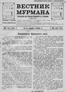Рахманинов Е. Возникновение Мурманского Порта // Вестник Мурмана. - 1924. - № 23. - С. 1-2.