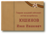 Юшинов Иван Иванович, гвардии младший лейтенант, лётчик-истребитель.