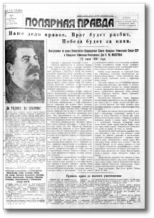«Полярная правда» – областная газета. В годы войны на её страницах публиковались сводки Совинформбюро, военные и трудовые подвиги северян, материалы о Мурманске и области.